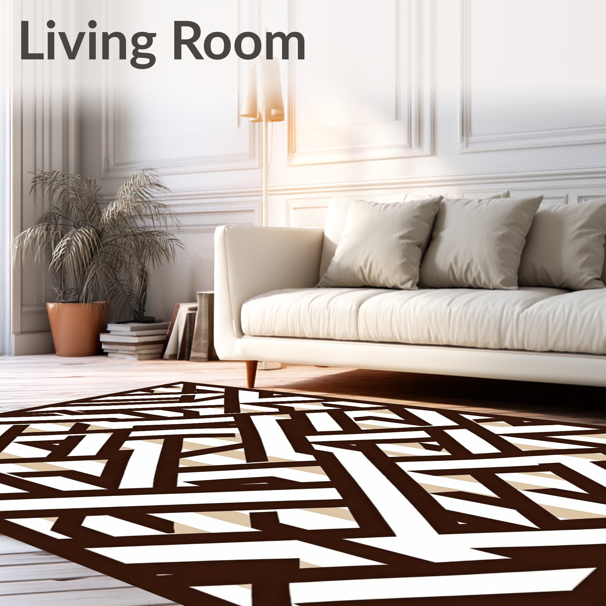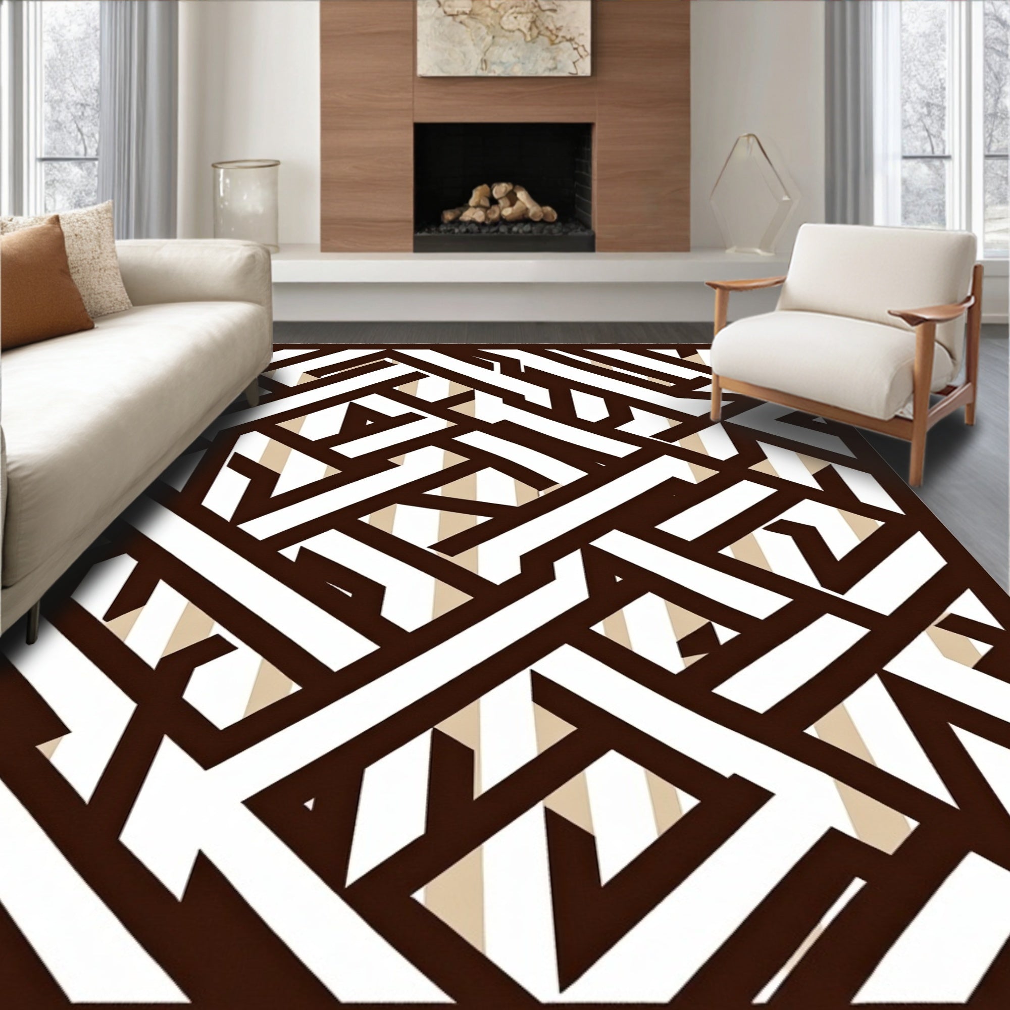 Flatwoven High Traffic Area Rug, Interlocking Maze Modern Art Style, Non Slip, Stain Resistant, Washable Area Rugs for Living Room, Bedroom (Brown) Overview: