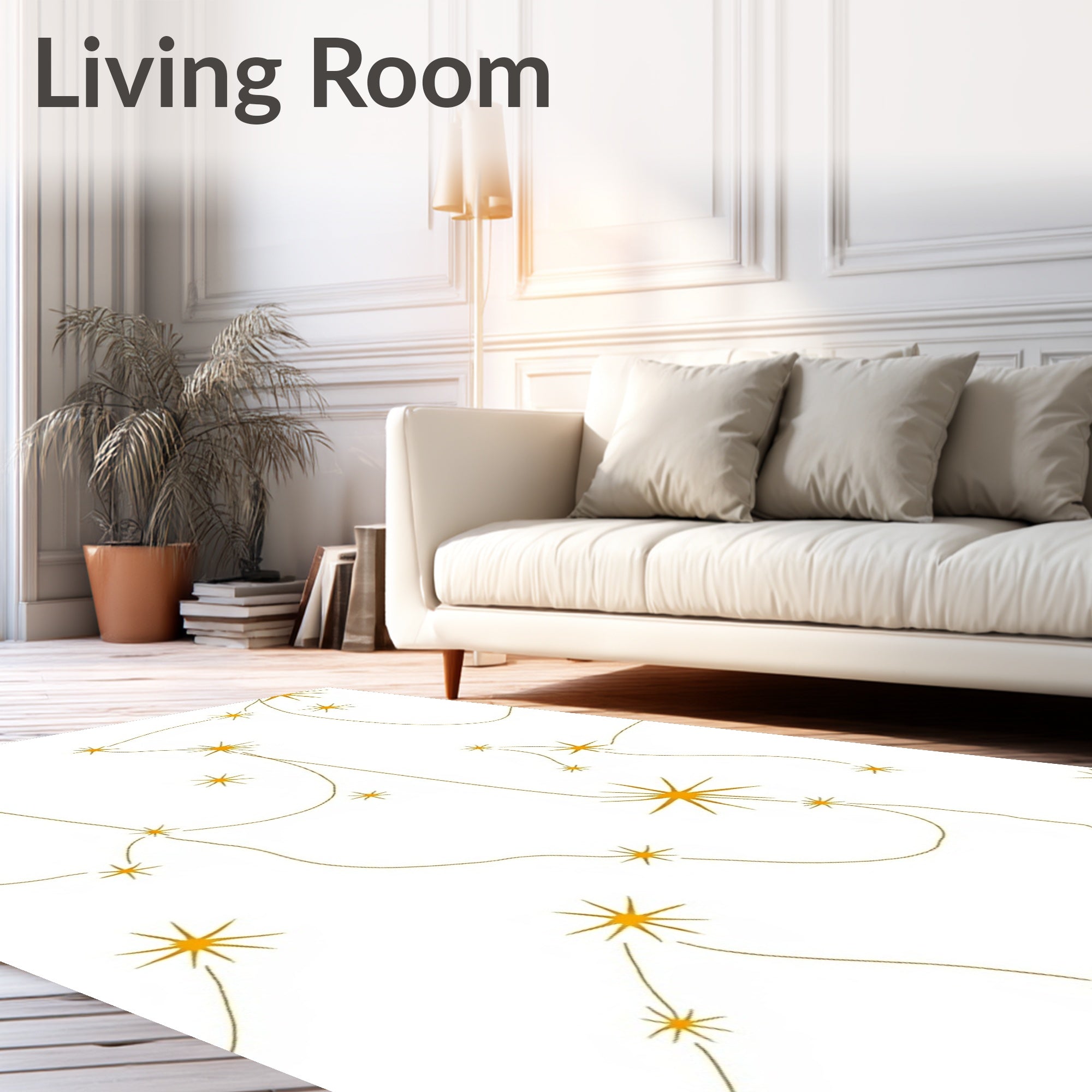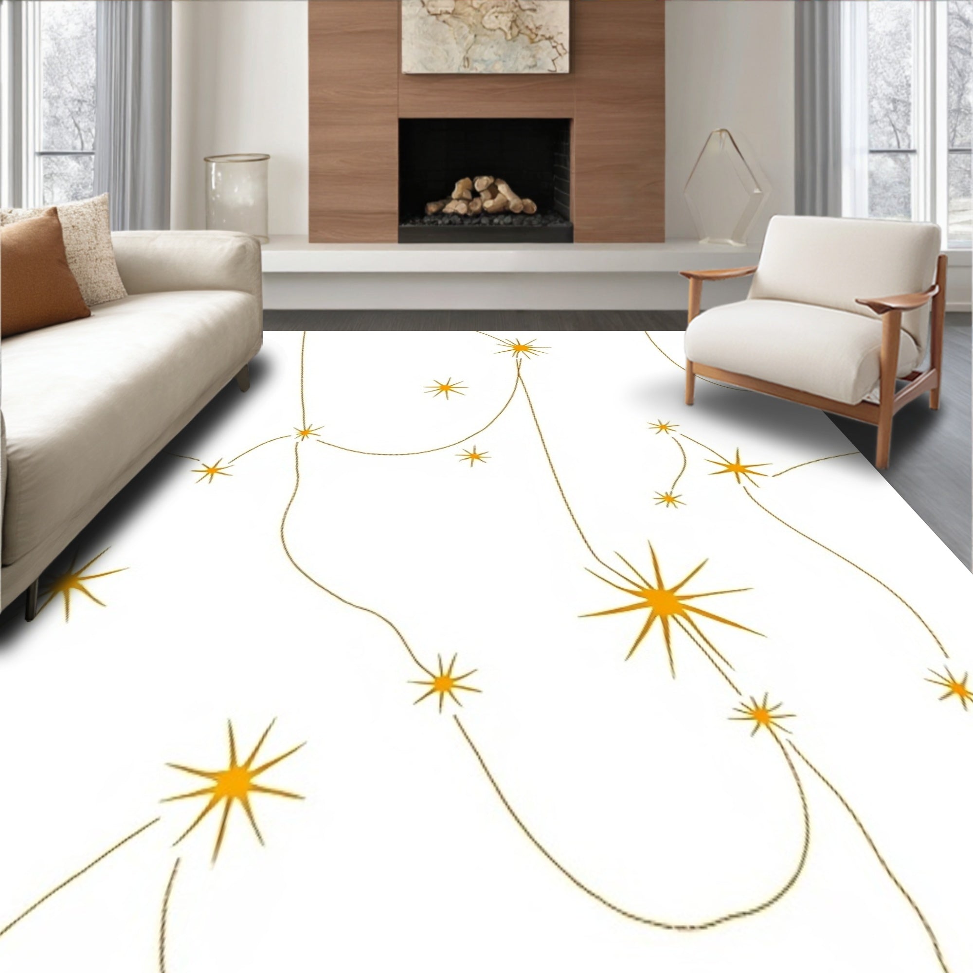 Flatwoven High Traffic Area Rug, Interstellar Constellation Map with Shooting Stars and Cosmic Trails, Non Slip, Stain Resistant, Washable Area Rugs for Living Room, Bedroom (Gold) Overview:
