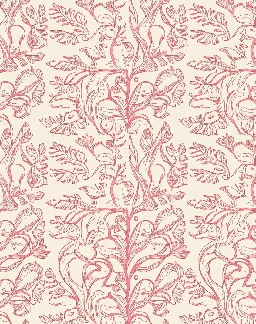 Intricate Boho Leaf Medley with Flowing Vines and Petite Flower Details (Pink)
