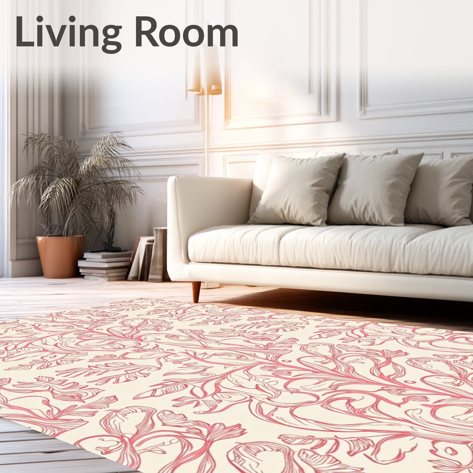Flatwoven High Traffic Area Rug, Intricate Boho Leaf Medley with Flowing Vines and Petite Flower Details, Non Slip, Stain Resistant, Washable Area Rugs for Living Room, Bedroom (Pink) Overview: