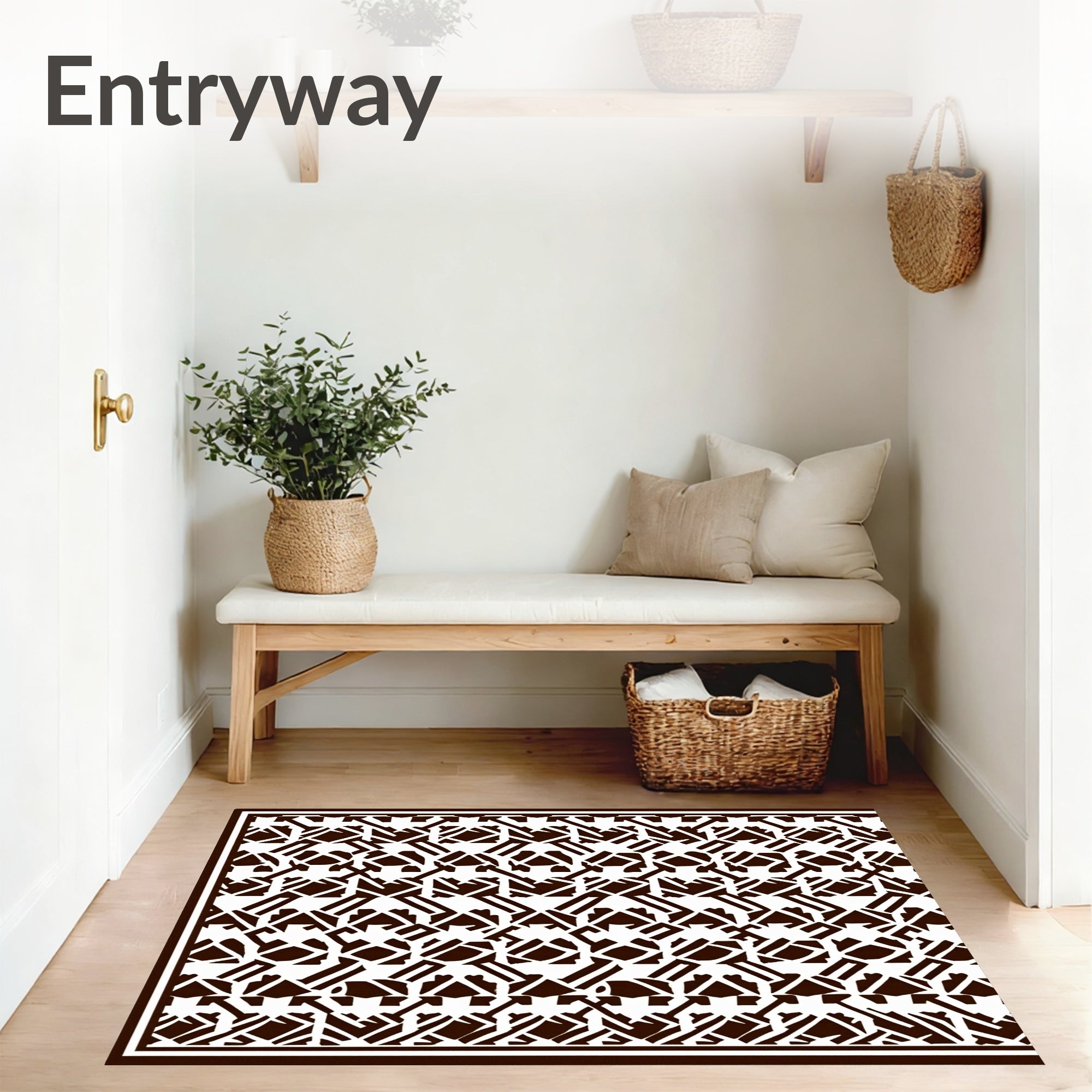 Flatwoven High Traffic Area Rug, Lattice Interlocking Design Hand Crafted with Repeating Motifs, Non Slip, Stain Resistant, Washable Area Rugs for Living Room, Bedroom (Brown) Overview: