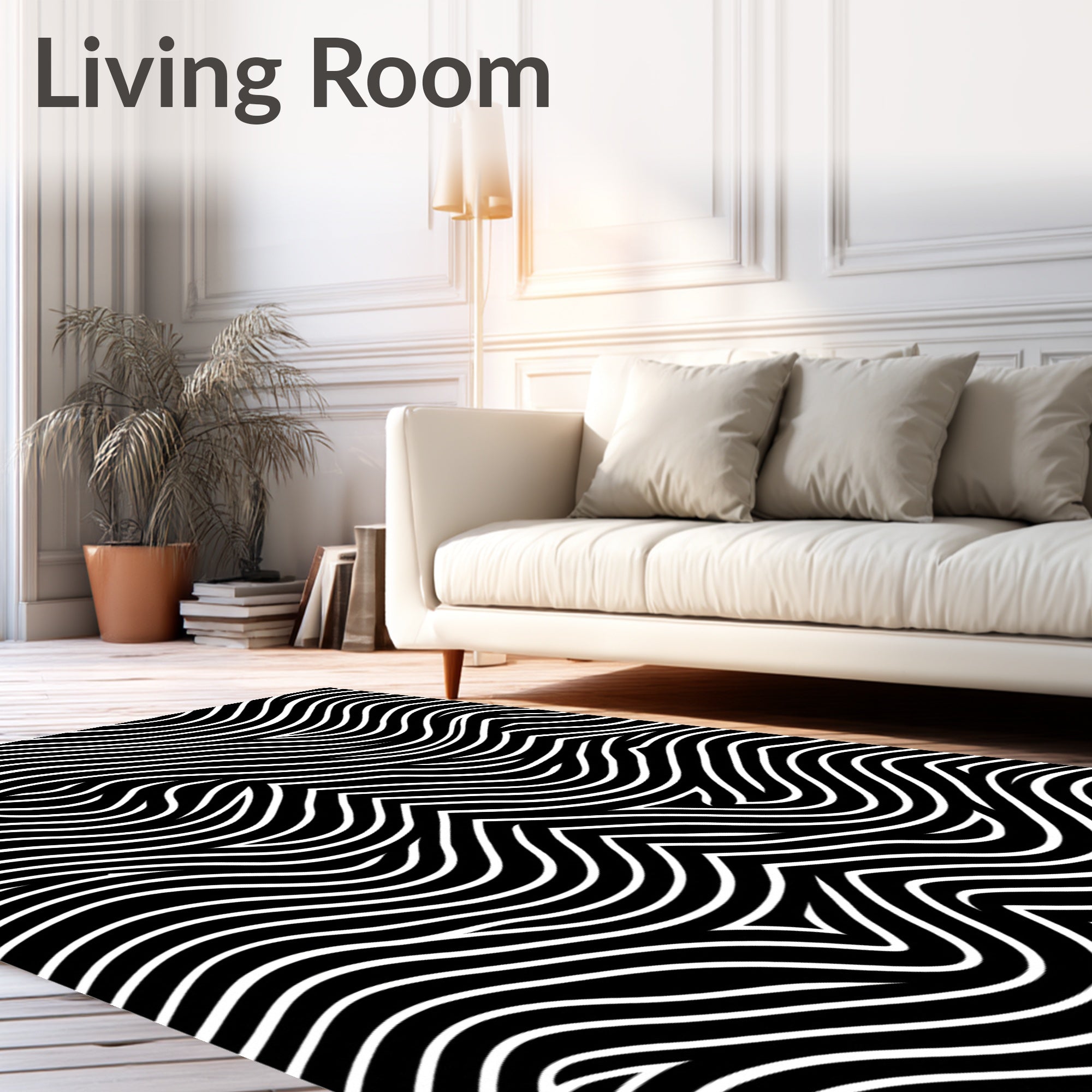 Flatwoven High Traffic Area Rug, Luxurious Arch Wave Micro Loop Textured Contemporary, Non Slip, Stain Resistant, Washable Area Rugs for Living Room, Bedroom (Black) Overview: