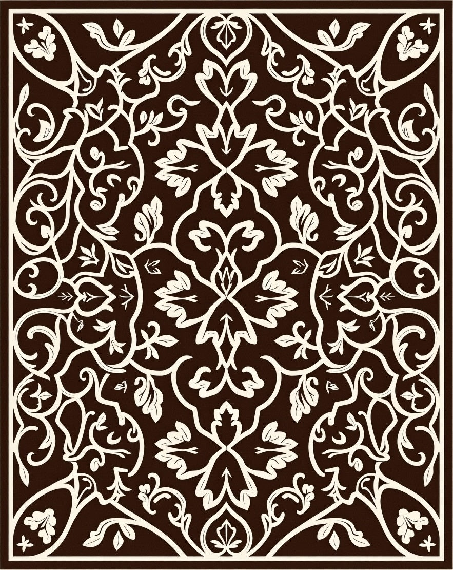 Luxurious Blossom Trellis Harmonious Intertwined Leaf Composition (Brown)