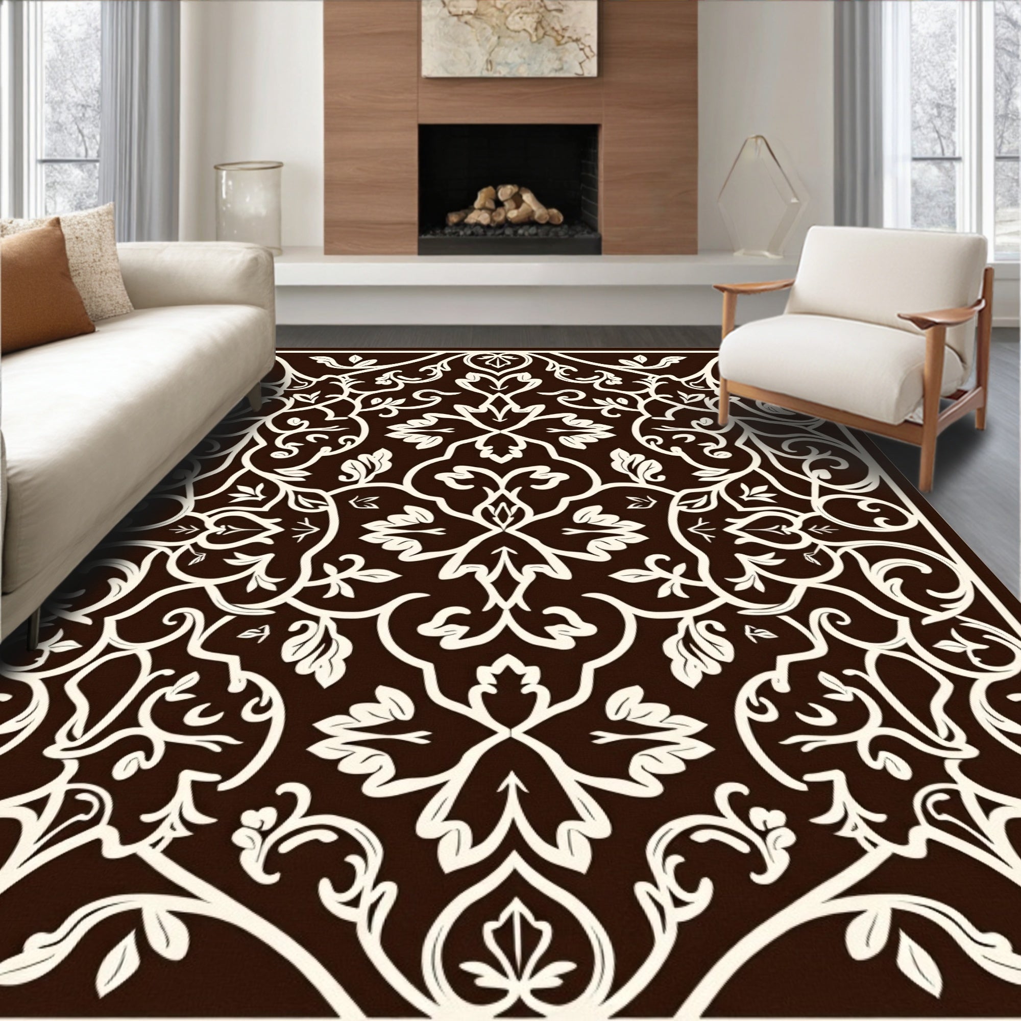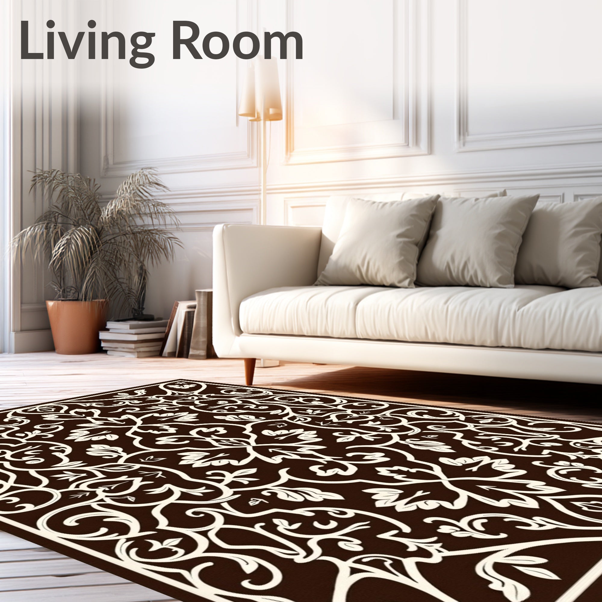 Flatwoven High Traffic Area Rug, Luxurious Blossom Trellis Harmonious Intertwined Leaf Composition, Non Slip, Stain Resistant, Washable Area Rugs for Living Room, Bedroom (Brown) Overview: