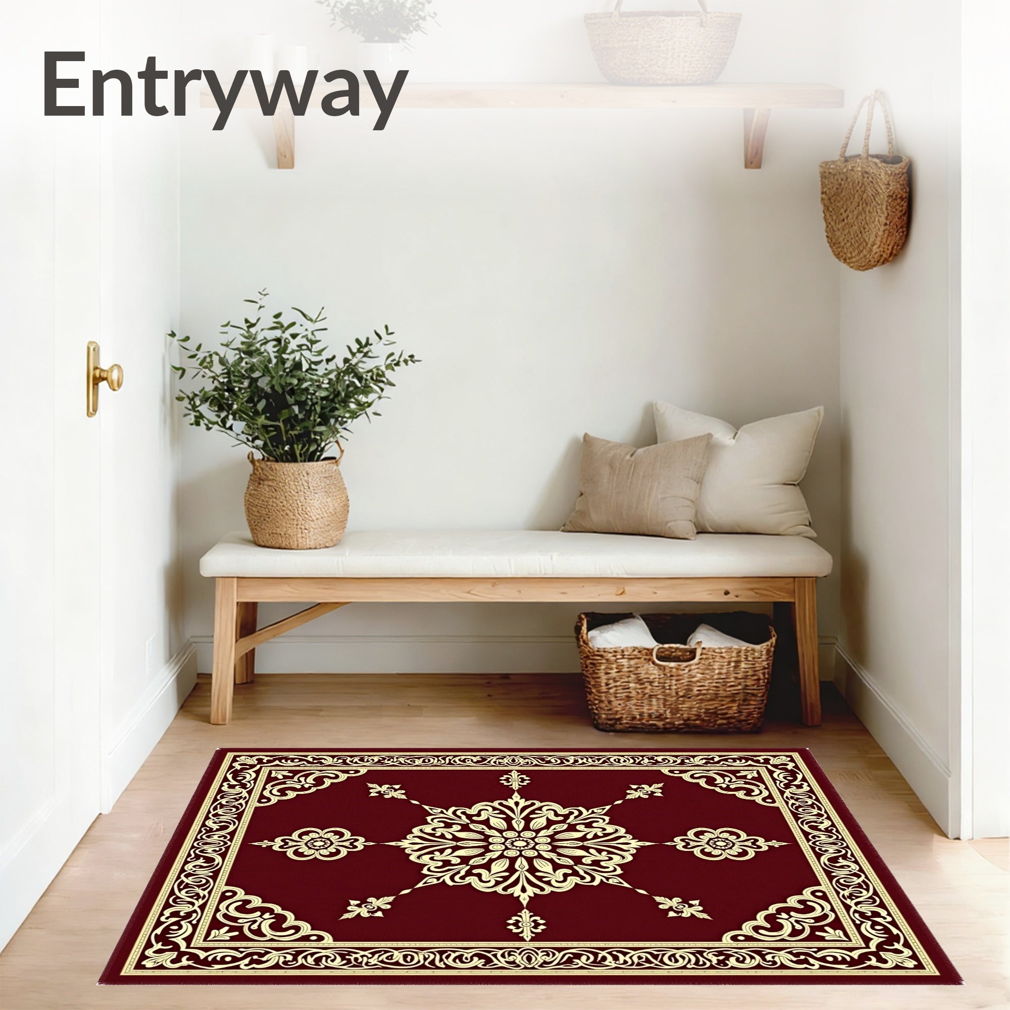 Flatwoven High Traffic Area Rug, Luxurious Vintage Medallion Handwoven Artisan, Non Slip, Stain Resistant, Washable Area Rugs for Living Room, Bedroom (Red) Overview: