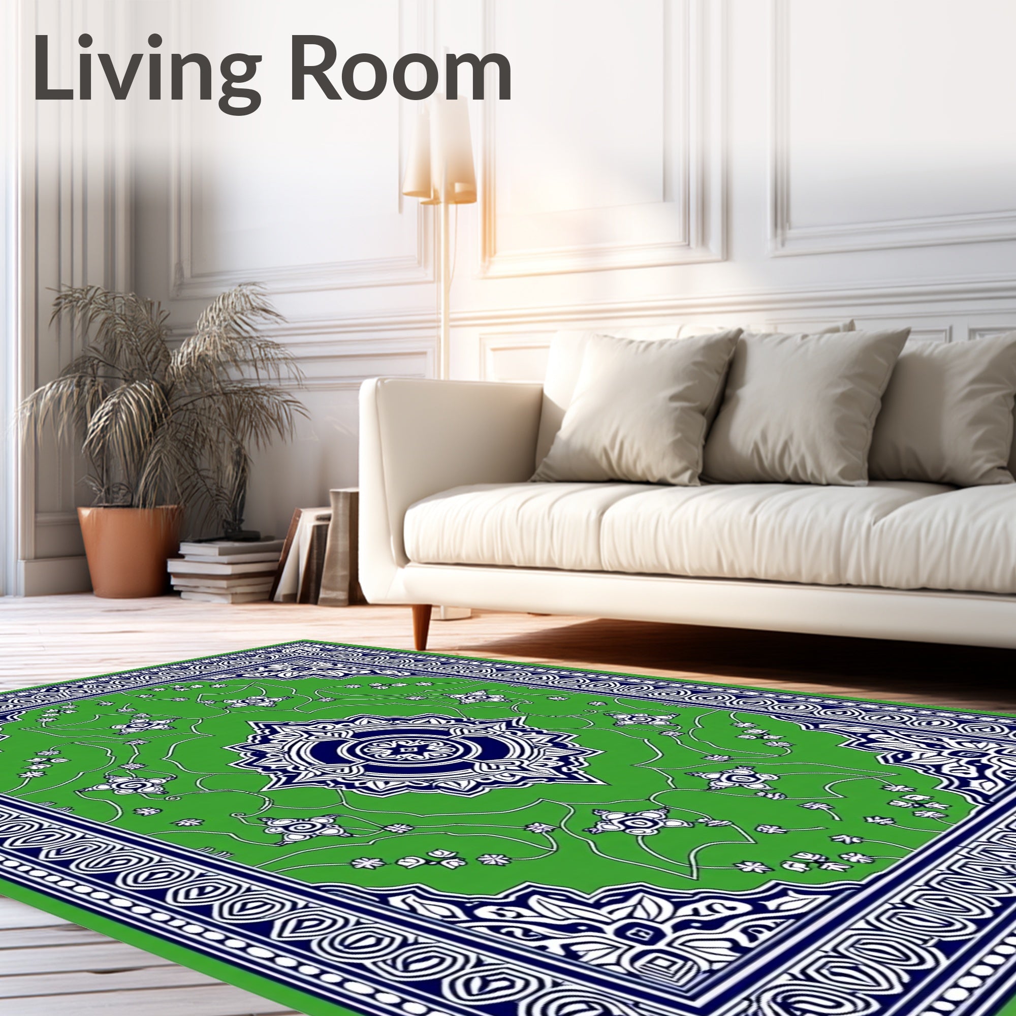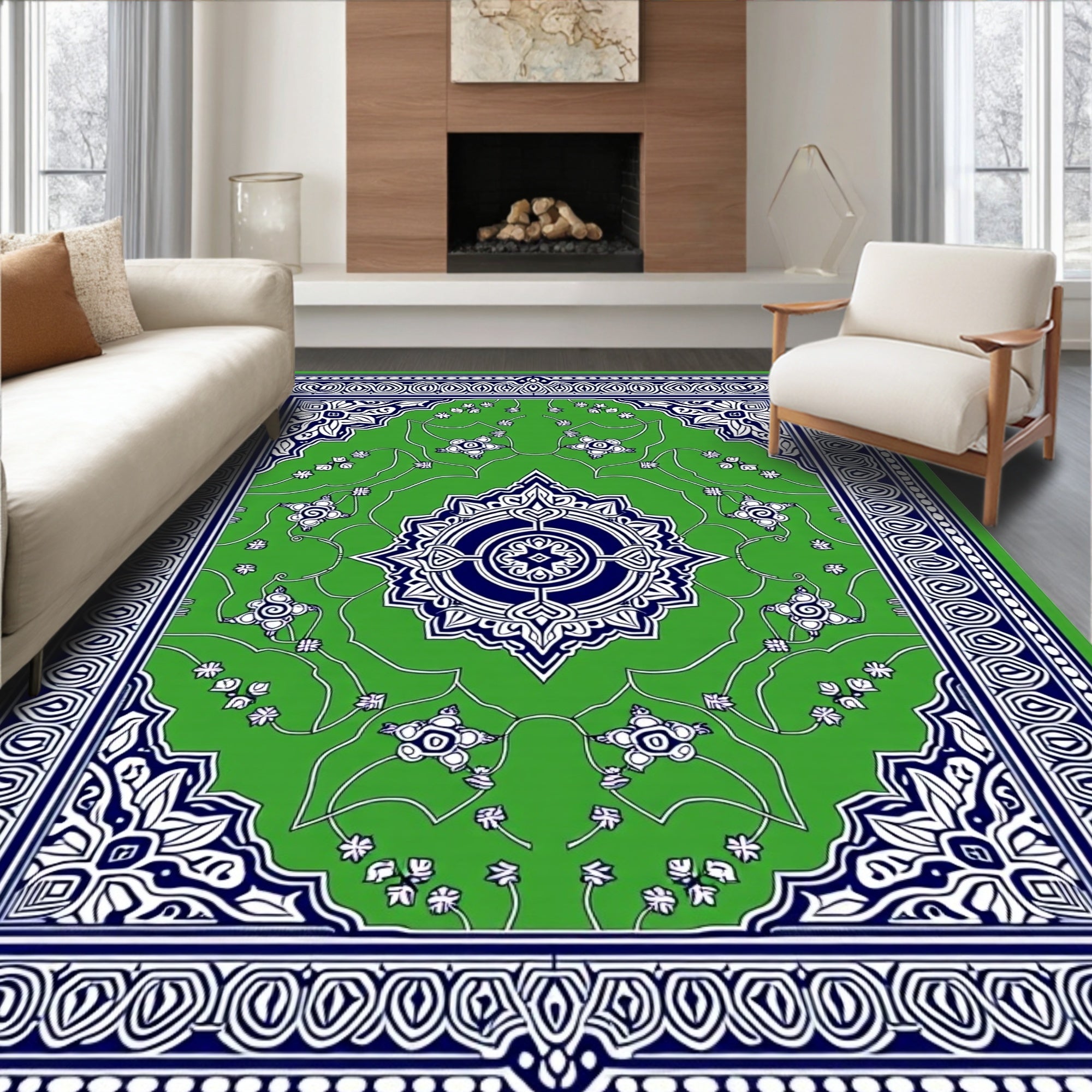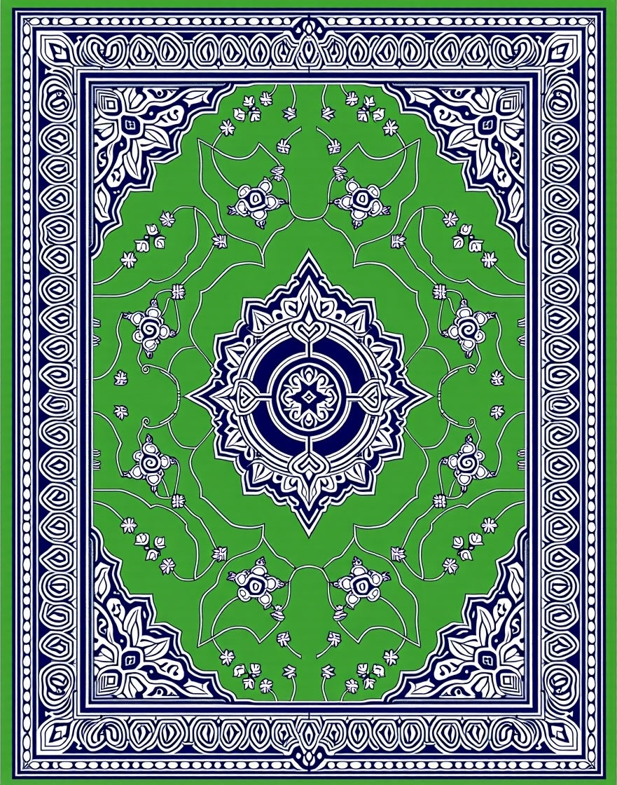 Flatwoven High Traffic Area Rug, Medallion Anti Slip Backing, Non Slip, Stain Resistant, Washable Area Rugs for Living Room, Bedroom (Green) Overview: