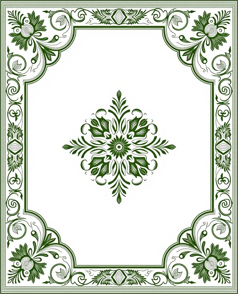 Medallion Floral Centerpiece with Ornate Border Detailing (Green)