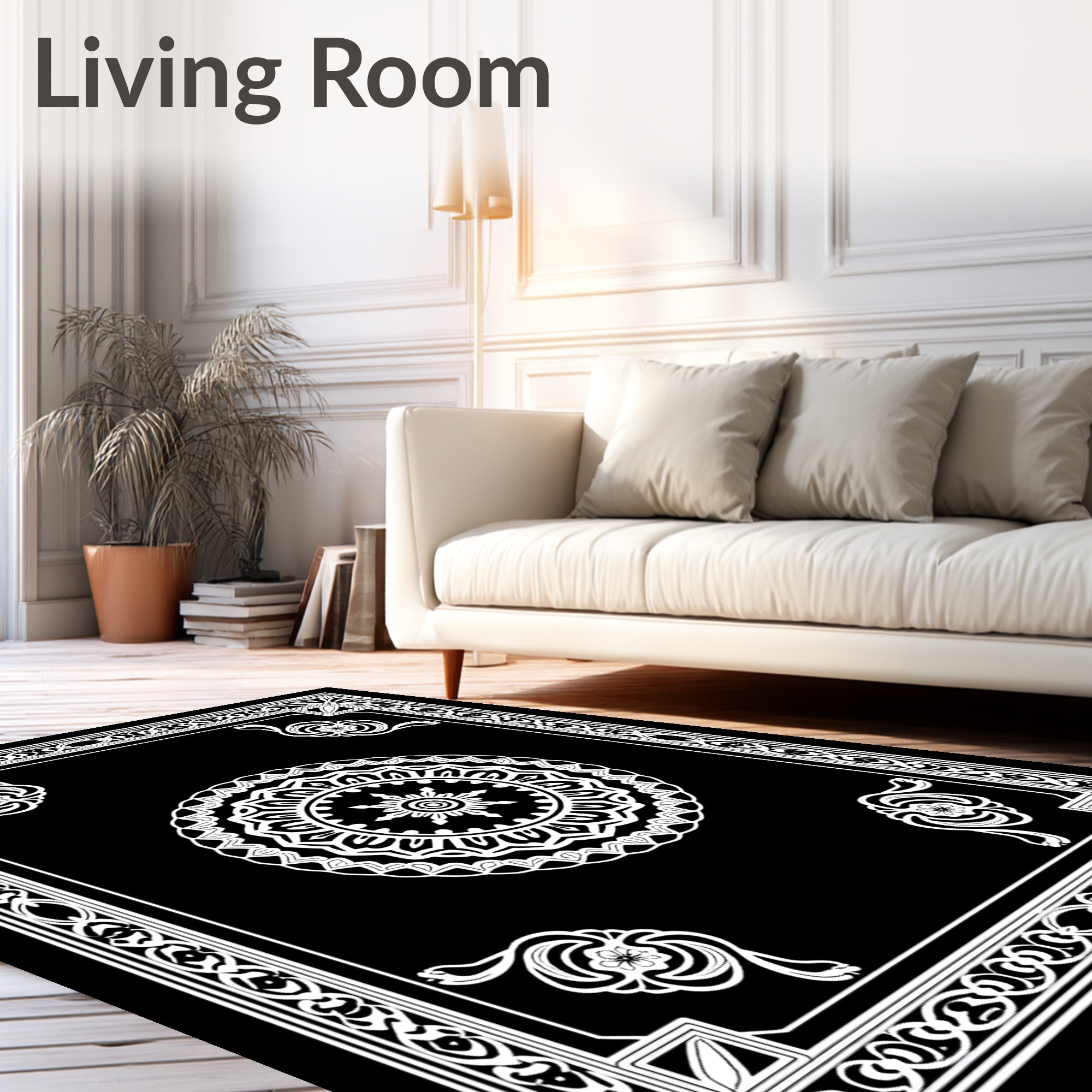 Flatwoven High Traffic Area Rug, Medallion Non Slip Ornate Floral Design, Non Slip, Stain Resistant, Washable Area Rugs for Living Room, Bedroom (Black) Overview: