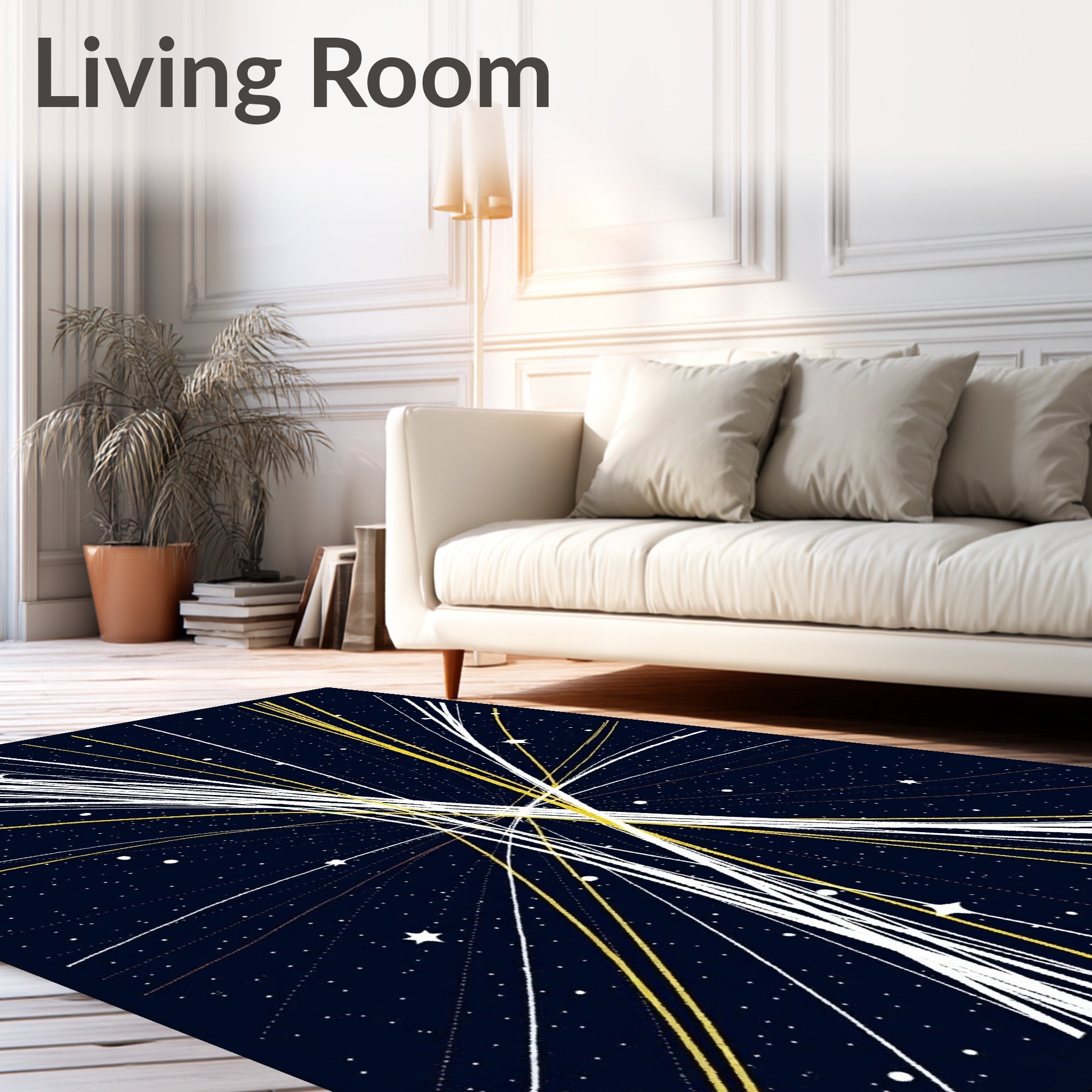 Flatwoven High Traffic Area Rug, Meteor Shower Trail Decorative with Stardust Sparkle Accents, Non Slip, Stain Resistant, Washable Area Rugs for Living Room, Bedroom (Black) Overview: