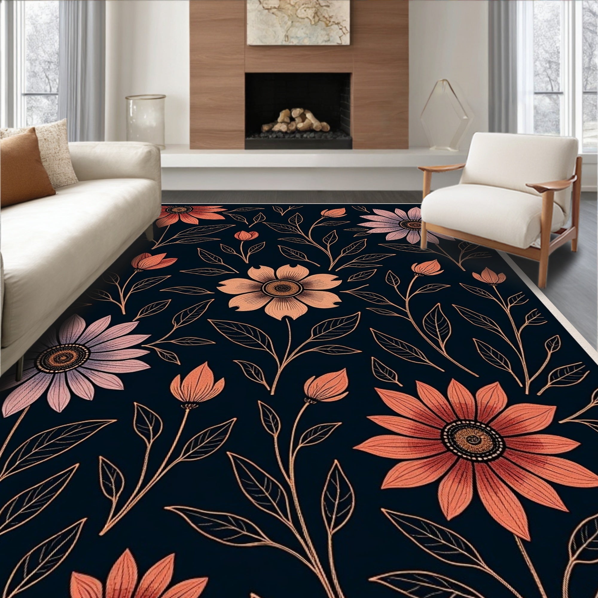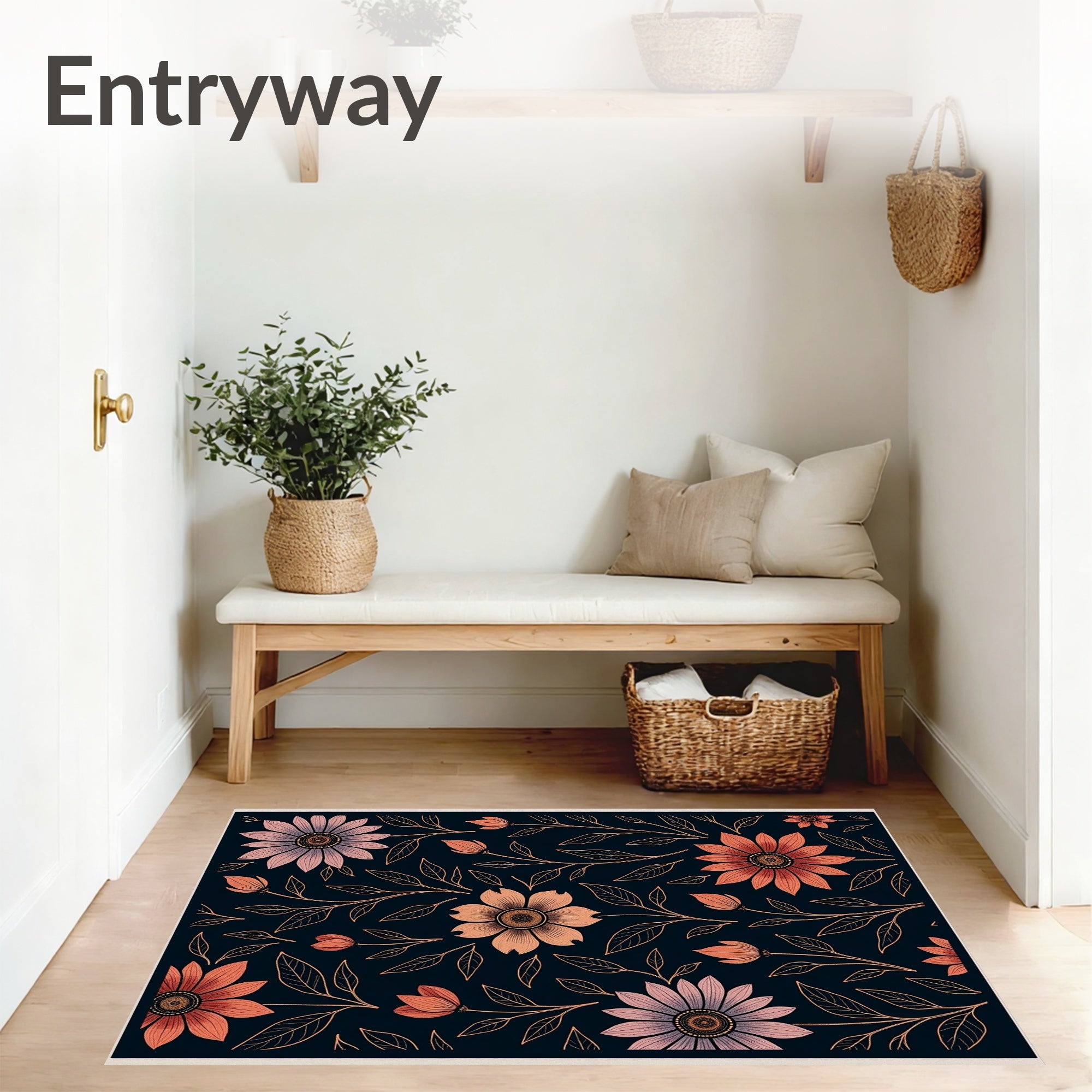 Flatwoven High Traffic Area Rug, Midnight Bloom Artisan Jewel, Non Slip, Stain Resistant, Washable Area Rugs for Living Room, Bedroom (Black) Overview: