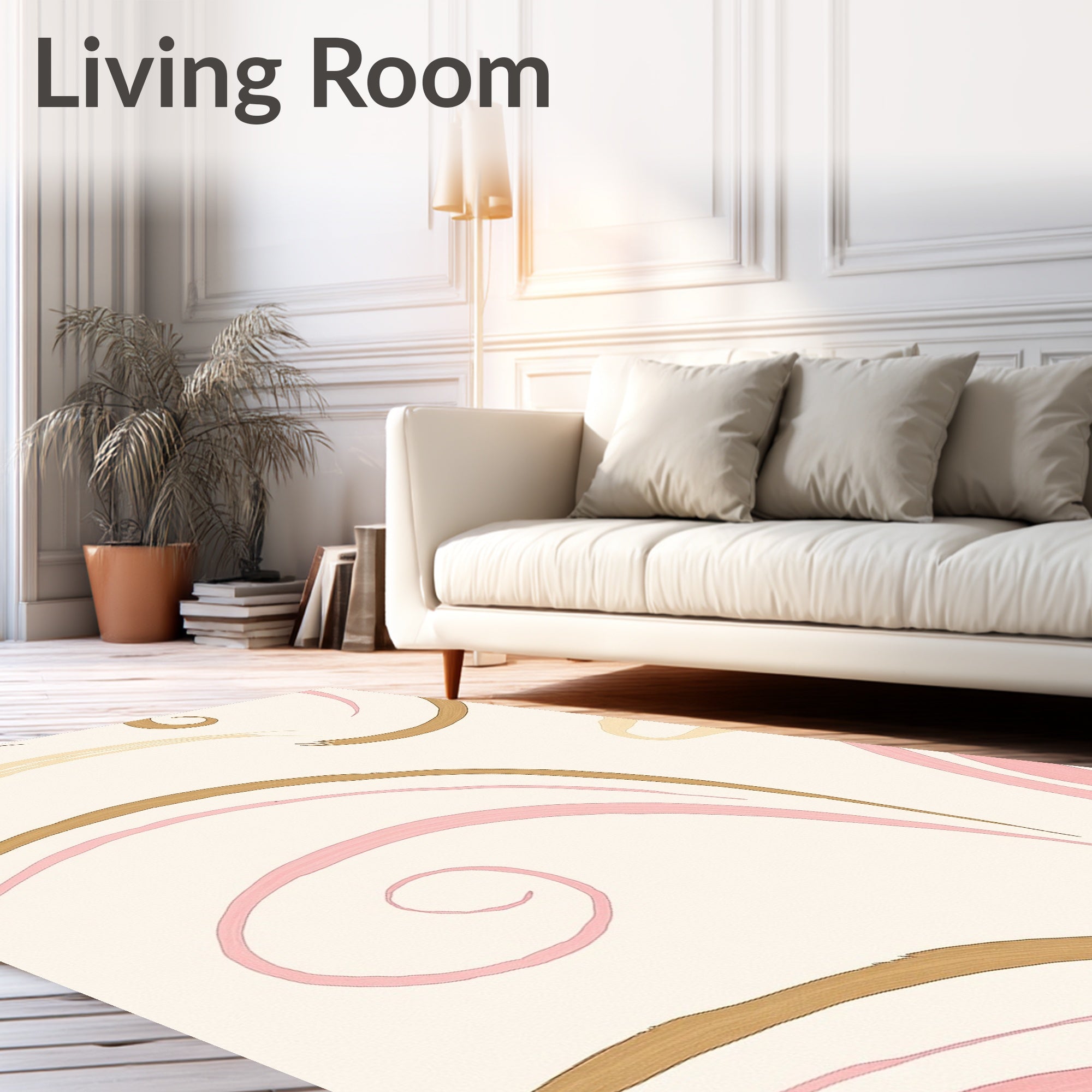 Flatwoven High Traffic Area Rug, Minimalist Abstract Brush Stroke Art Featuring Curved Lines, Non Slip, Stain Resistant, Washable Area Rugs for Living Room, Bedroom (Pink) Overview:
