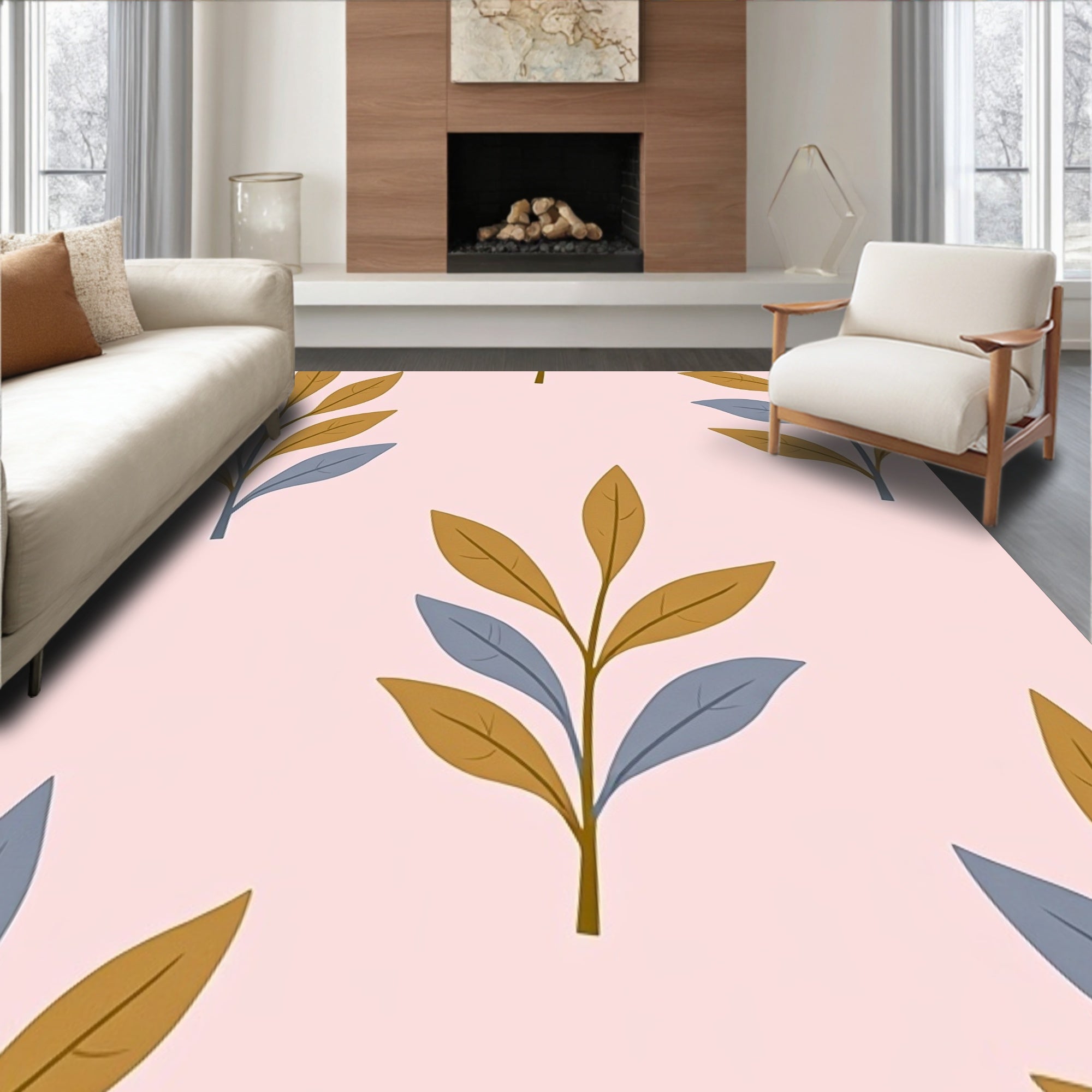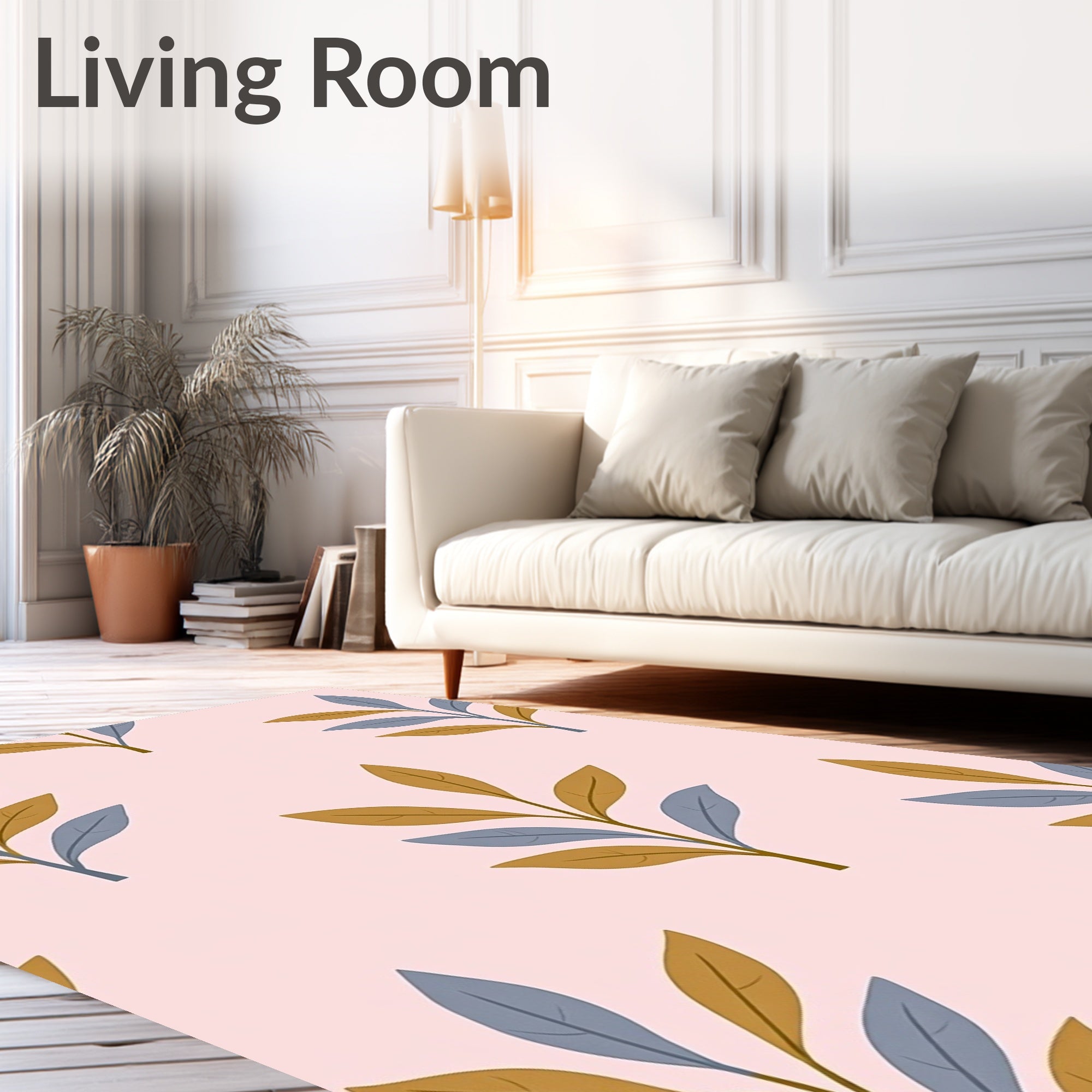 Flatwoven High Traffic Area Rug, Minimalist Aesthetic Fern with Stylized Floral Clusters and Fluid Motifs, Non Slip, Stain Resistant, Washable Area Rugs for Living Room, Bedroom (Pink) Overview: