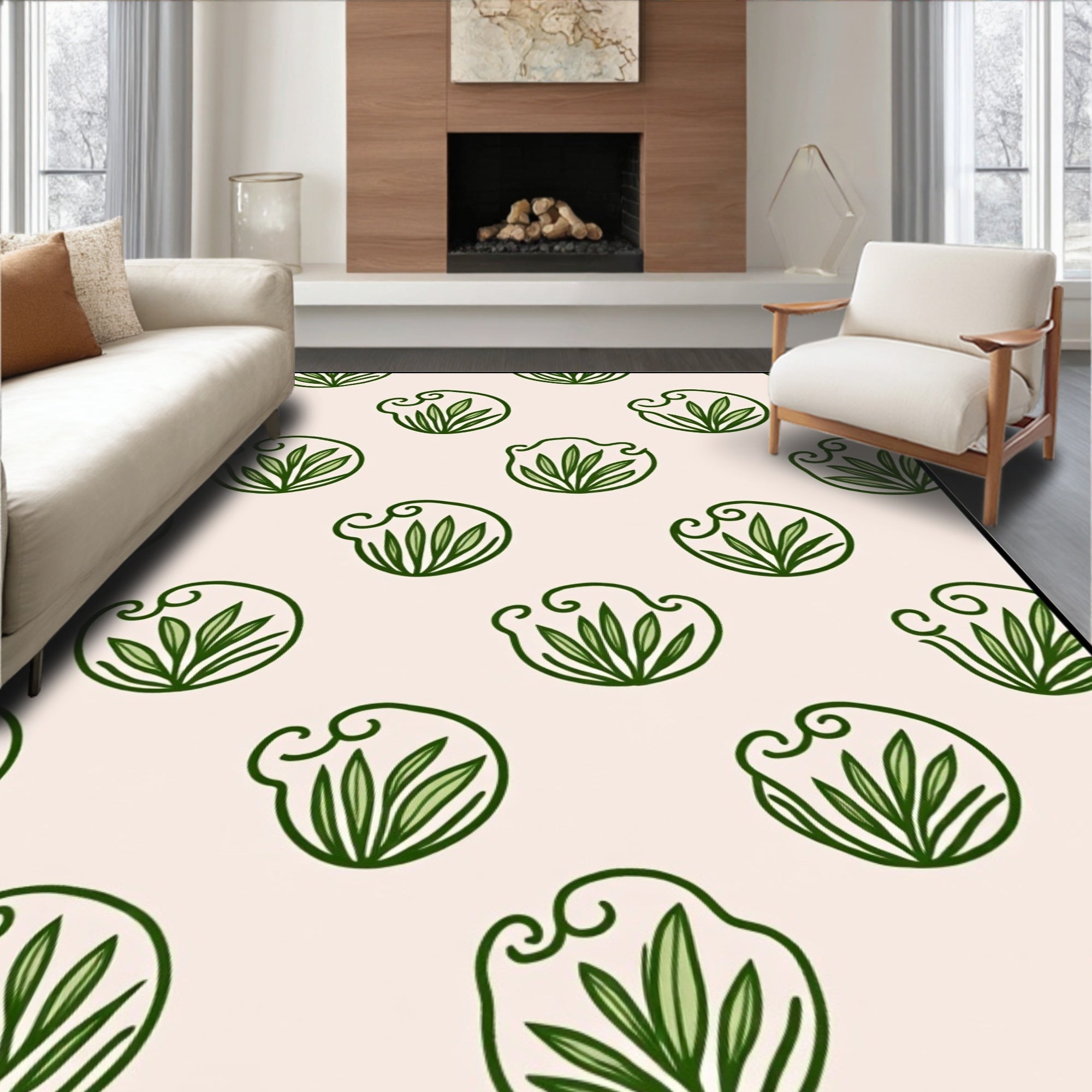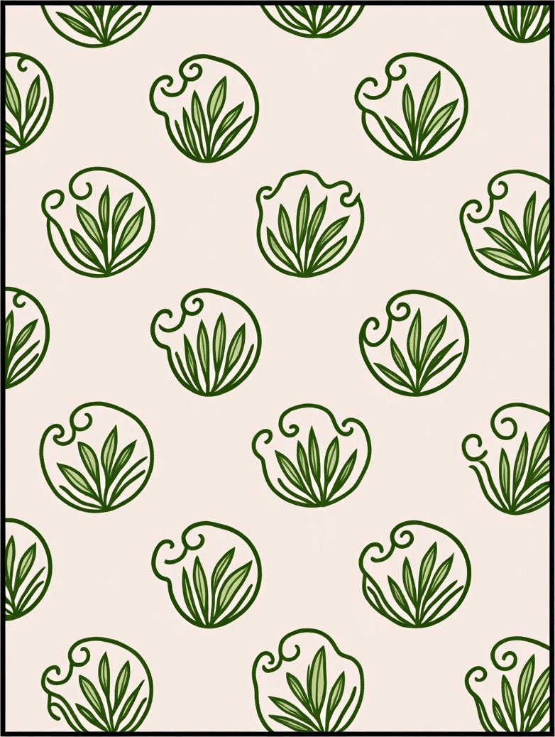 Modern Botanical Scrollwork with Minimalist Floral Accents (Green)