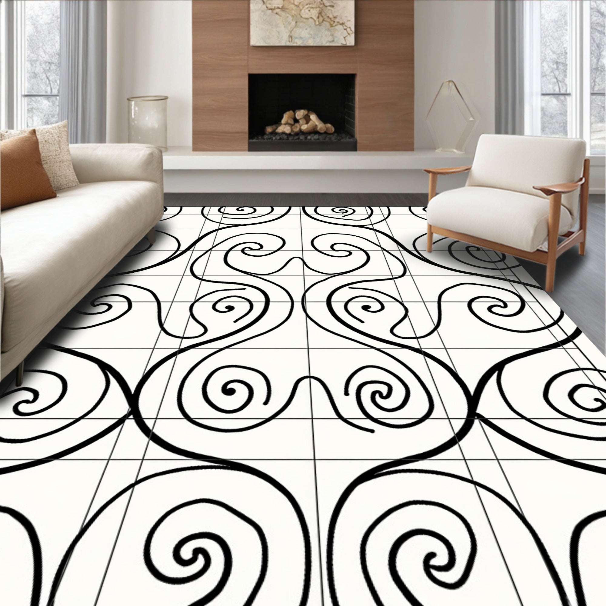 Flatwoven High Traffic Area Rug, Modern Interlocking Arches with Bold Wavy Motif and Subtle Grid, Non Slip, Stain Resistant, Washable Area Rugs for Living Room, Bedroom (Black) Overview: