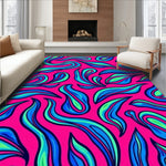 Flatwoven High Traffic Area Rug, Modern Wave Flourish with Stylized Leaf and Petal Details, Non Slip, Stain Resistant, Washable Area Rugs for Living Room, Bedroom (Pink) Overview: