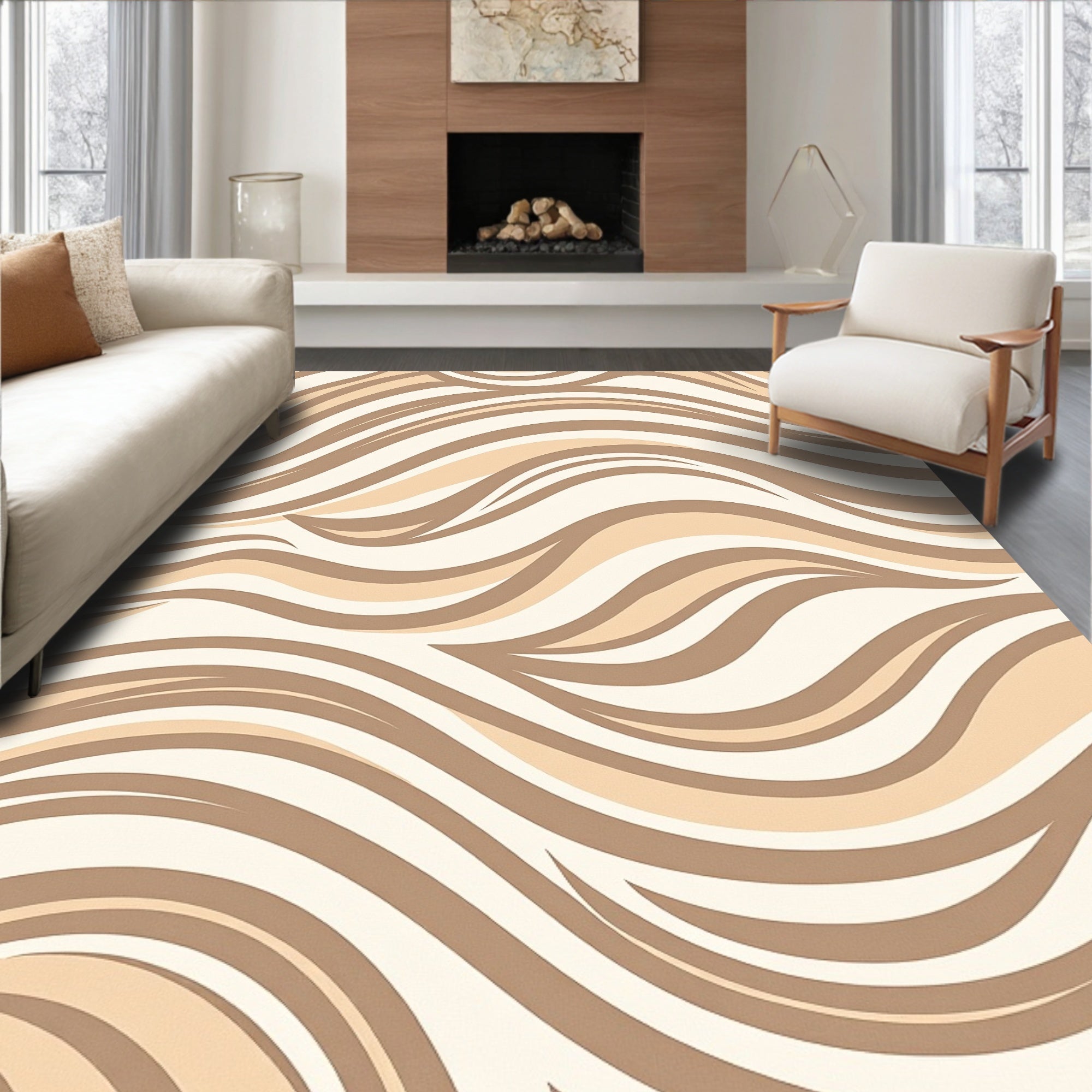 Flatwoven High Traffic Area Rug, Modern Wave Ripple Textured Luxury Decorative Accent, Non Slip, Stain Resistant, Washable Area Rugs for Living Room, Bedroom (Beige) Overview: