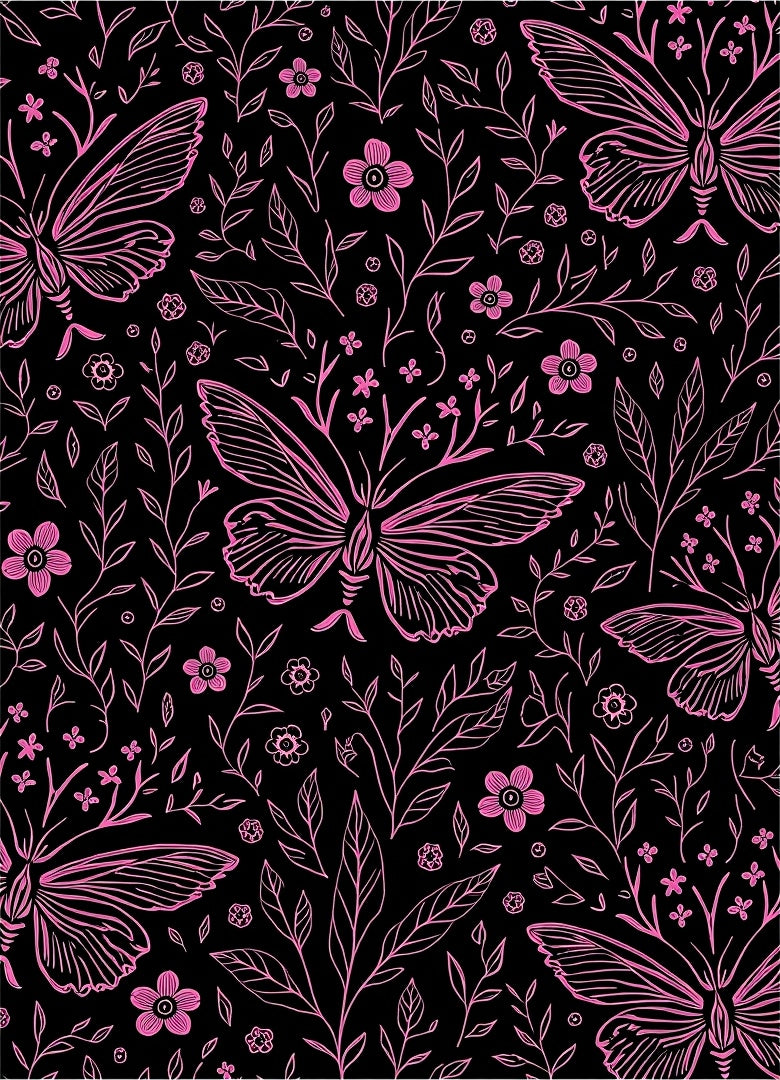 Mystical Moth Wings with Moonlit Garden Florals Enchanted Nature (Black)