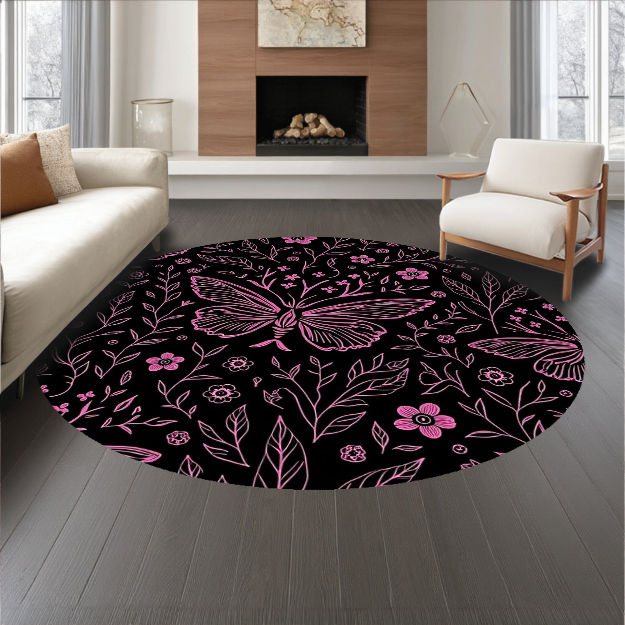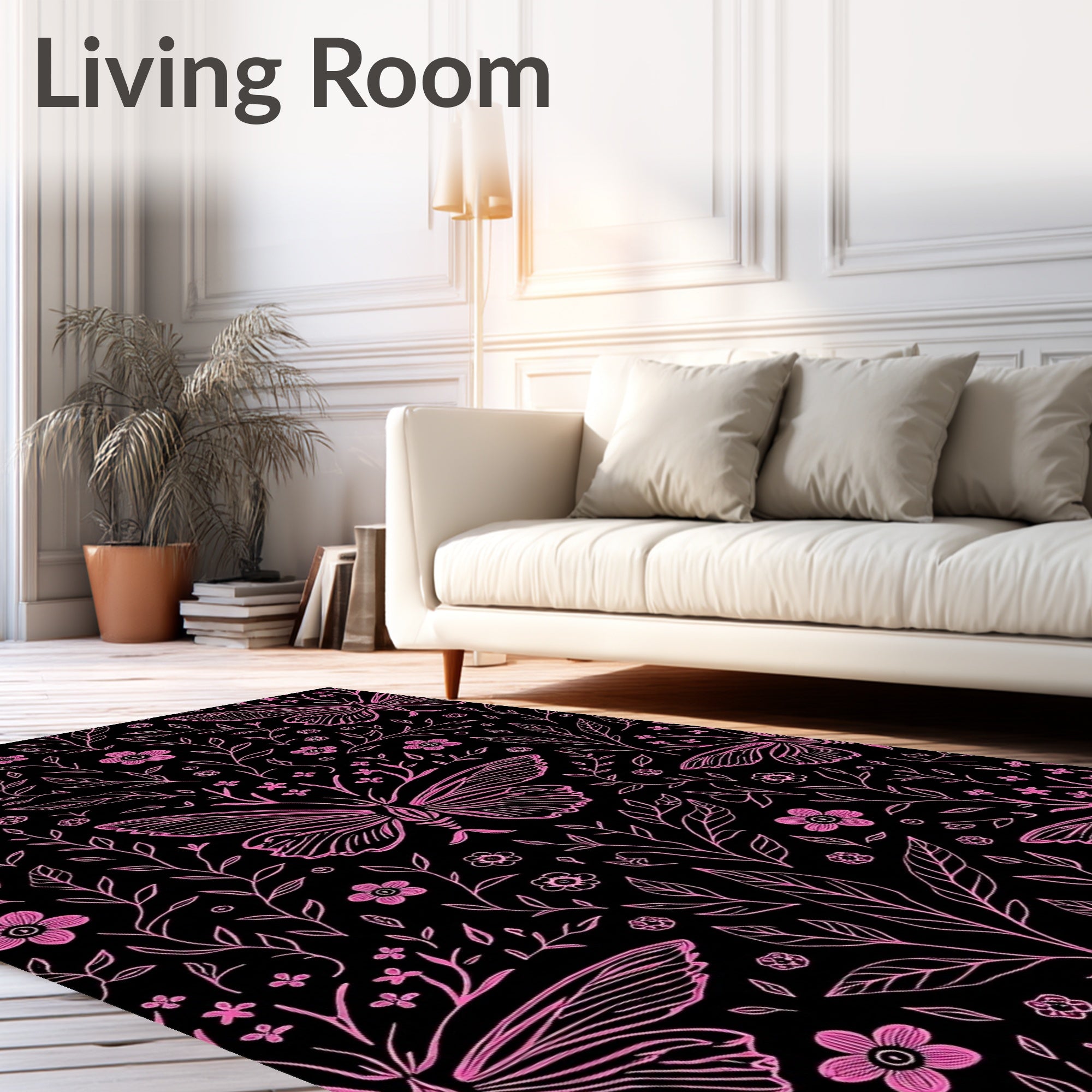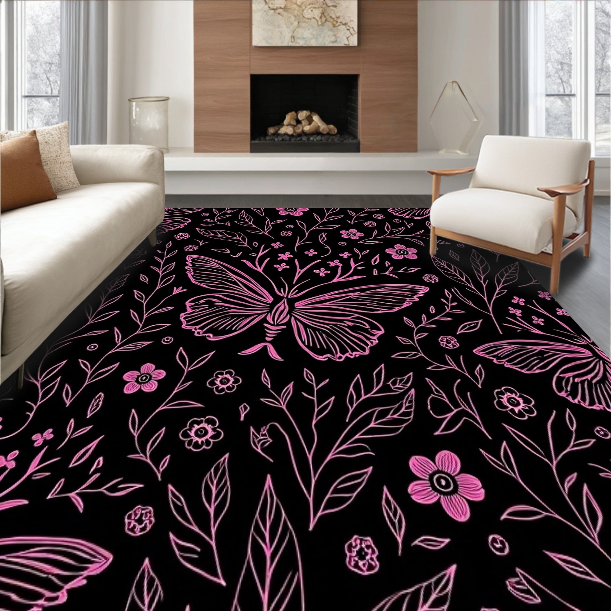 Flatwoven High Traffic Area Rug, Mystical Moth Wings with Moonlit Garden Florals Enchanted Nature, Non Slip, Stain Resistant, Washable Area Rugs for Living Room, Bedroom (Black) Overview: