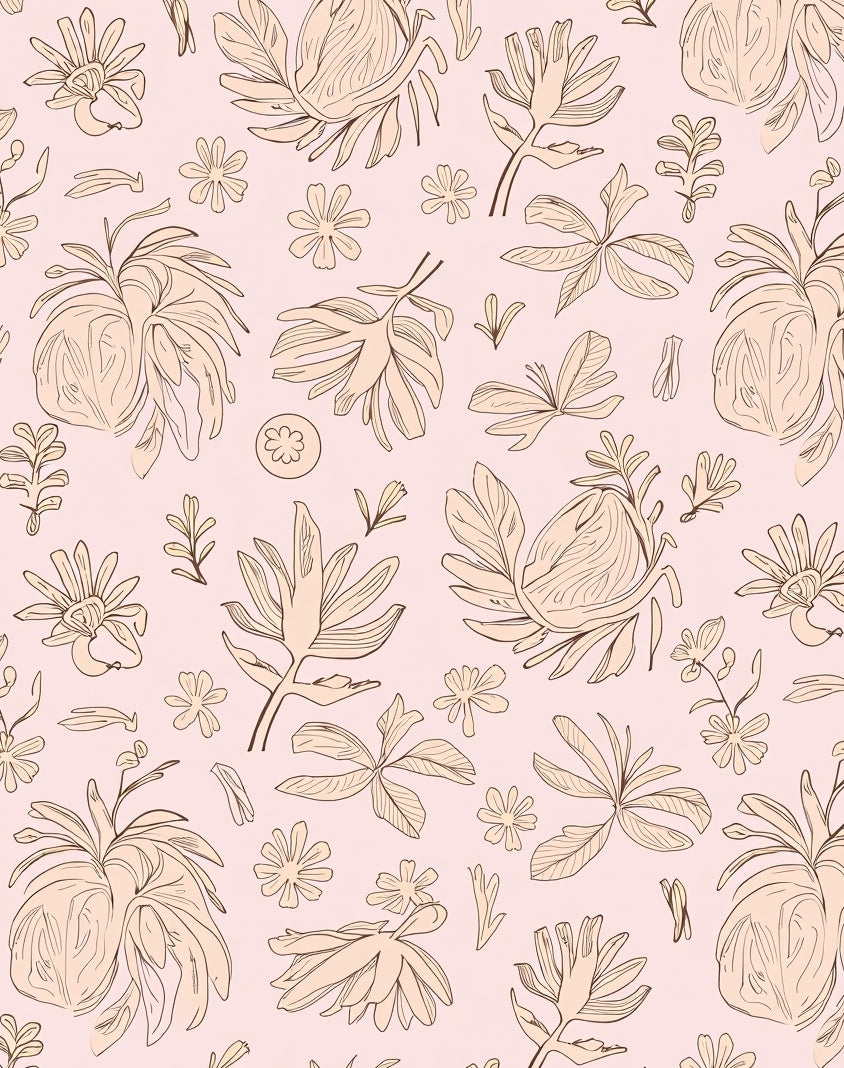 Neutral Toned Floral Swirl with Ornate Leafy Embellishments (Pink)