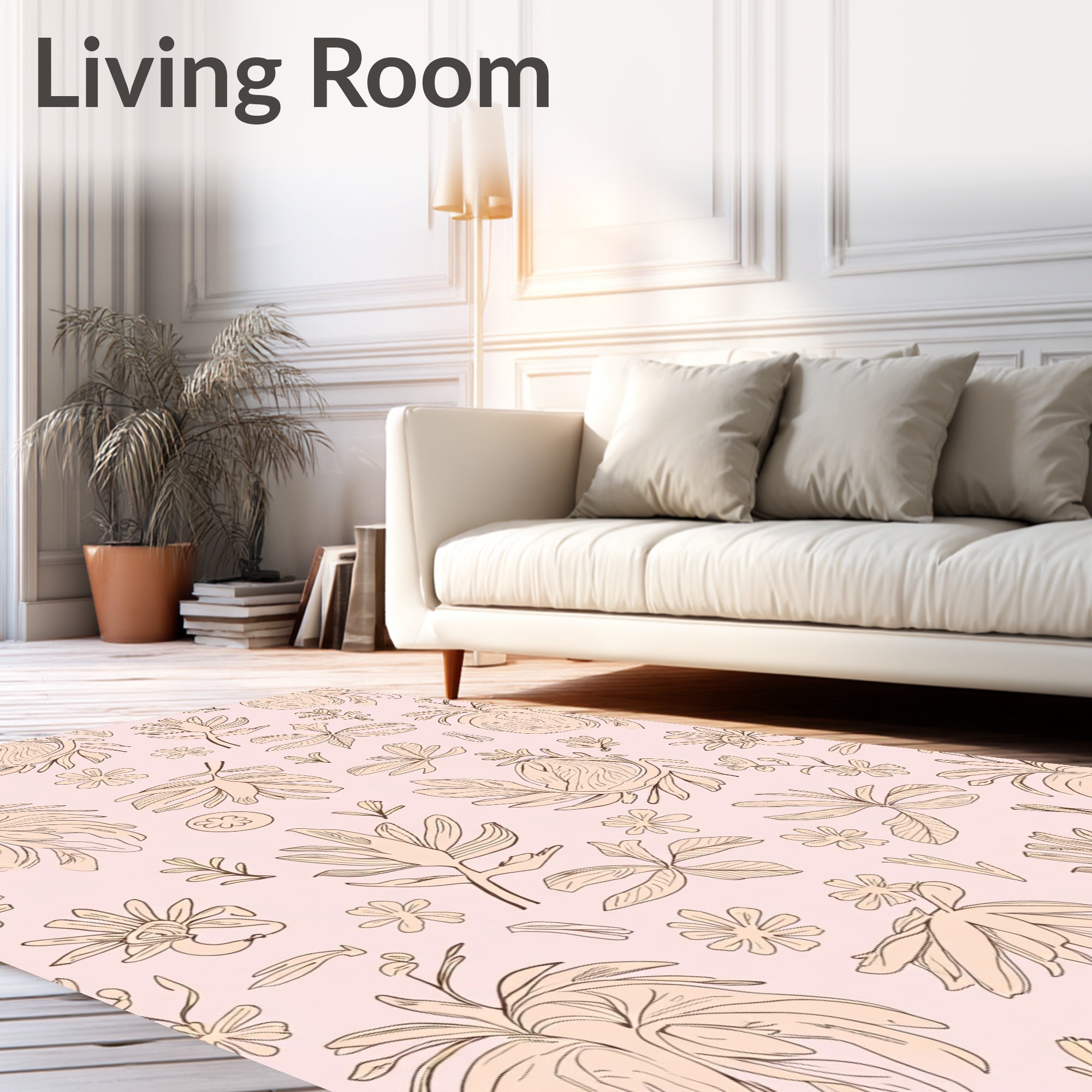 Flatwoven High Traffic Area Rug, Neutral Toned Floral Swirl with Ornate Leafy Embellishments, Non Slip, Stain Resistant, Washable Area Rugs for Living Room, Bedroom (Pink) Overview: