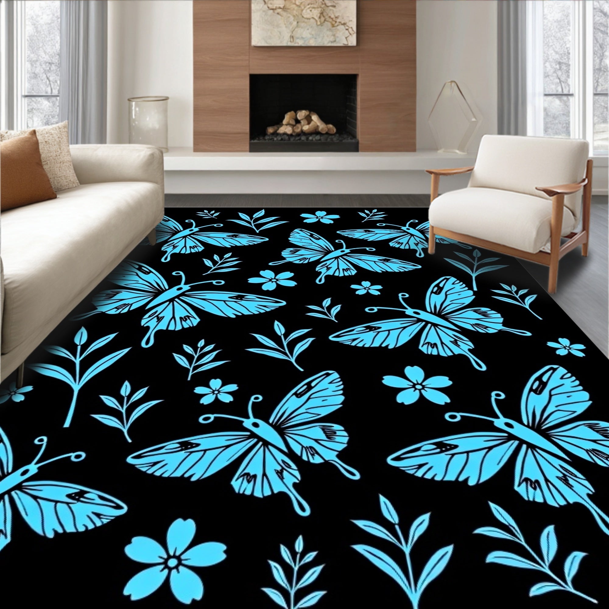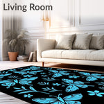 Flatwoven High Traffic Area Rug, Nocturnal Moth Garden Enchanted Wilderness Fantasy, Non Slip, Stain Resistant, Washable Area Rugs for Living Room, Bedroom (Black) Overview: