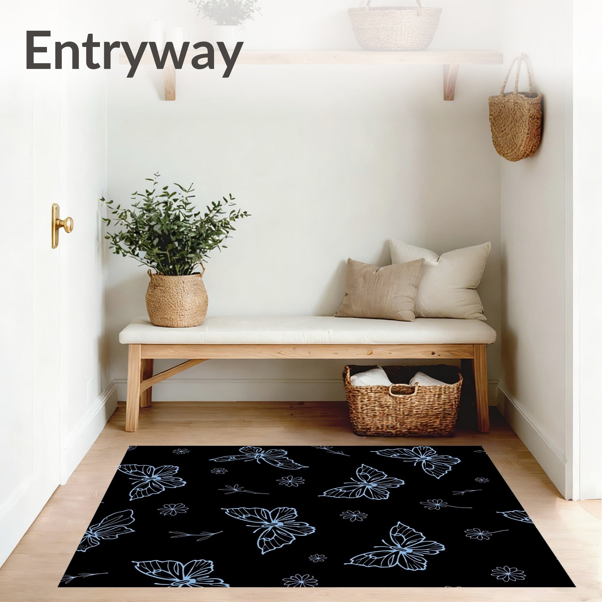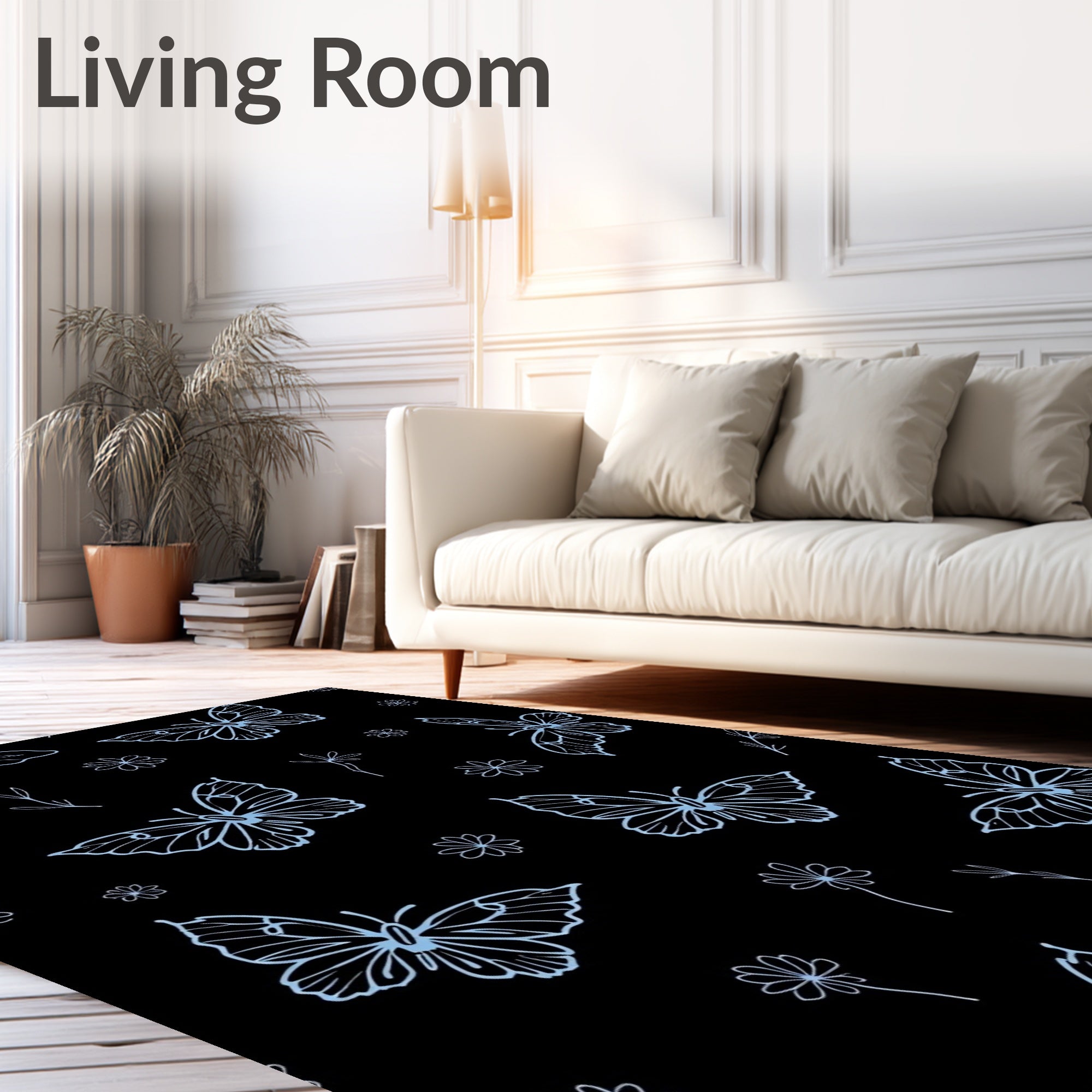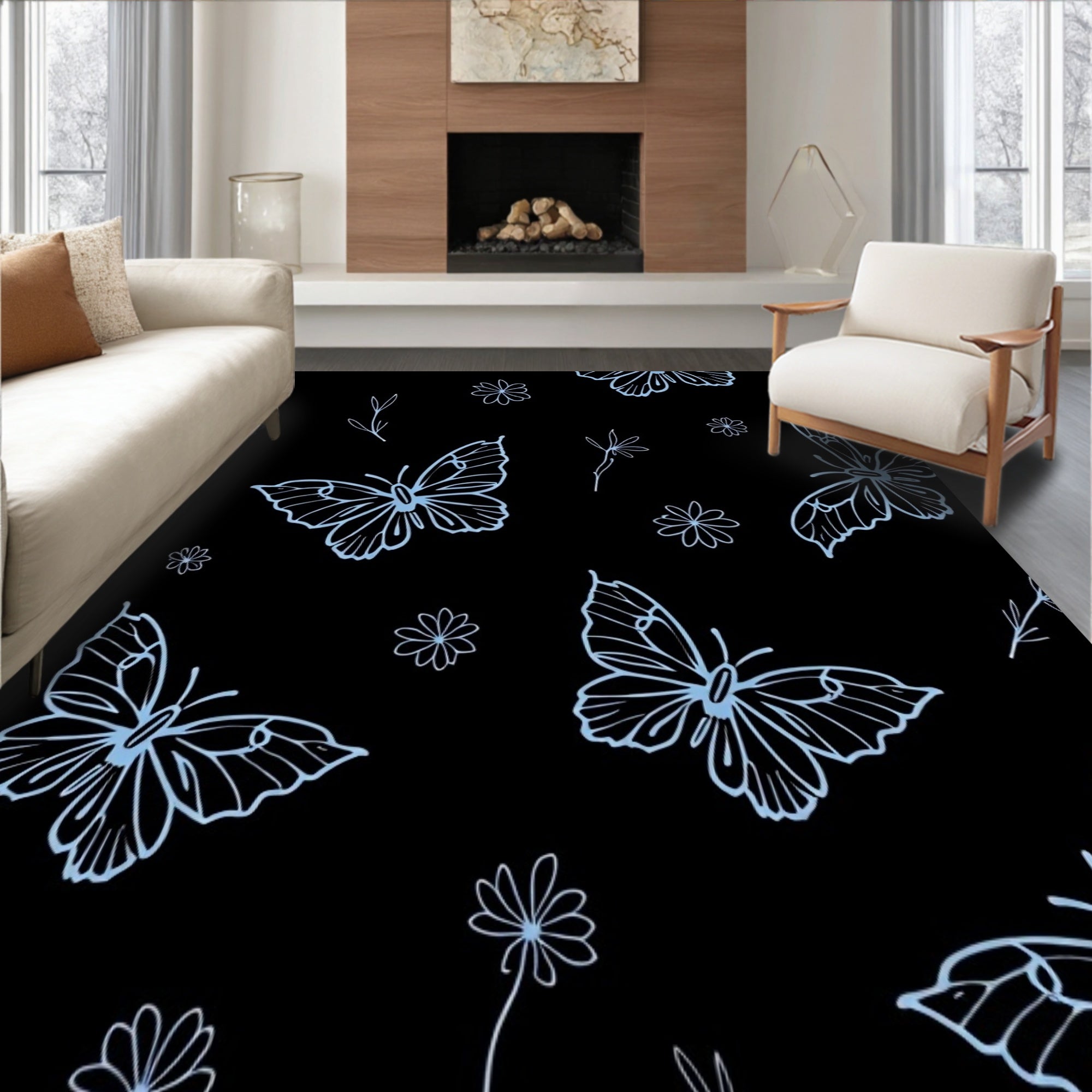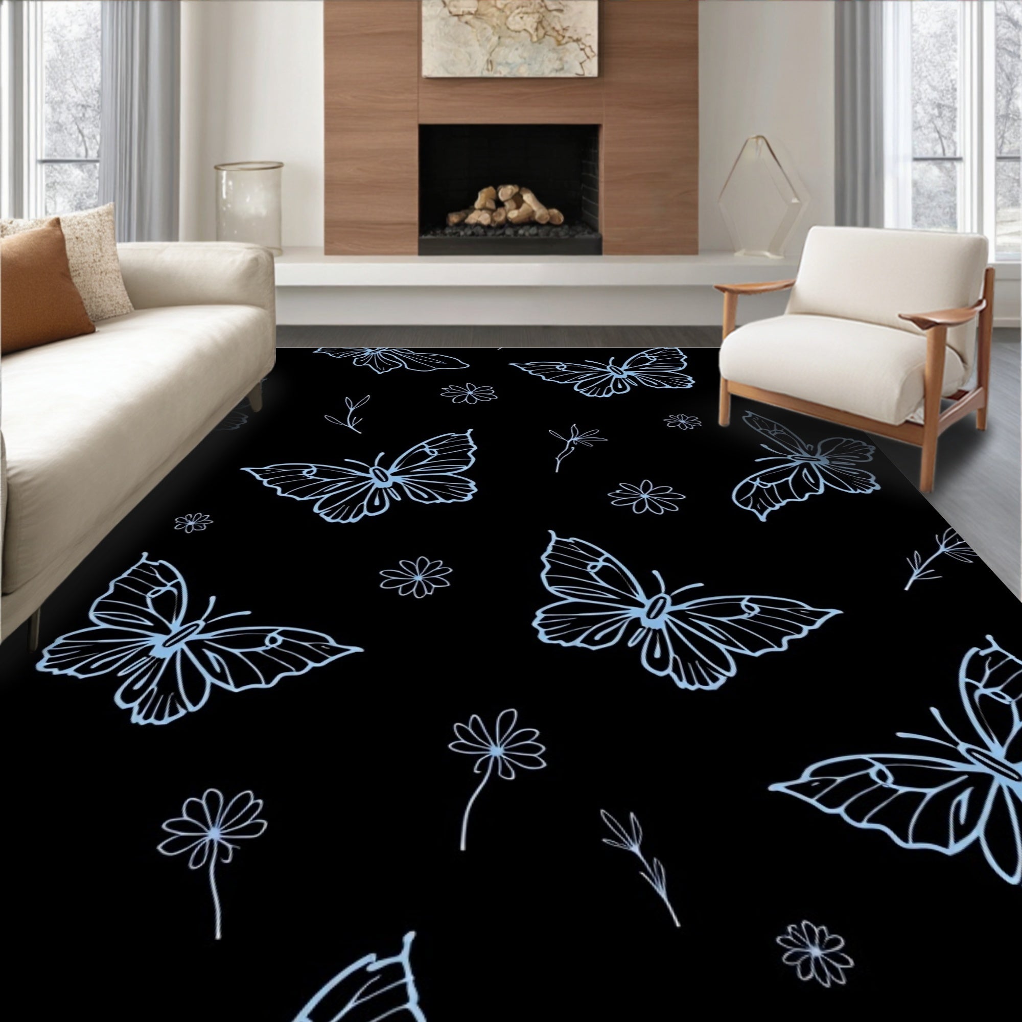 Flatwoven High Traffic Area Rug, Nocturnal Winged Elegance Boho Insect Floral Artistic Decorative, Non Slip, Stain Resistant, Washable Area Rugs for Living Room, Bedroom (Black) Overview: