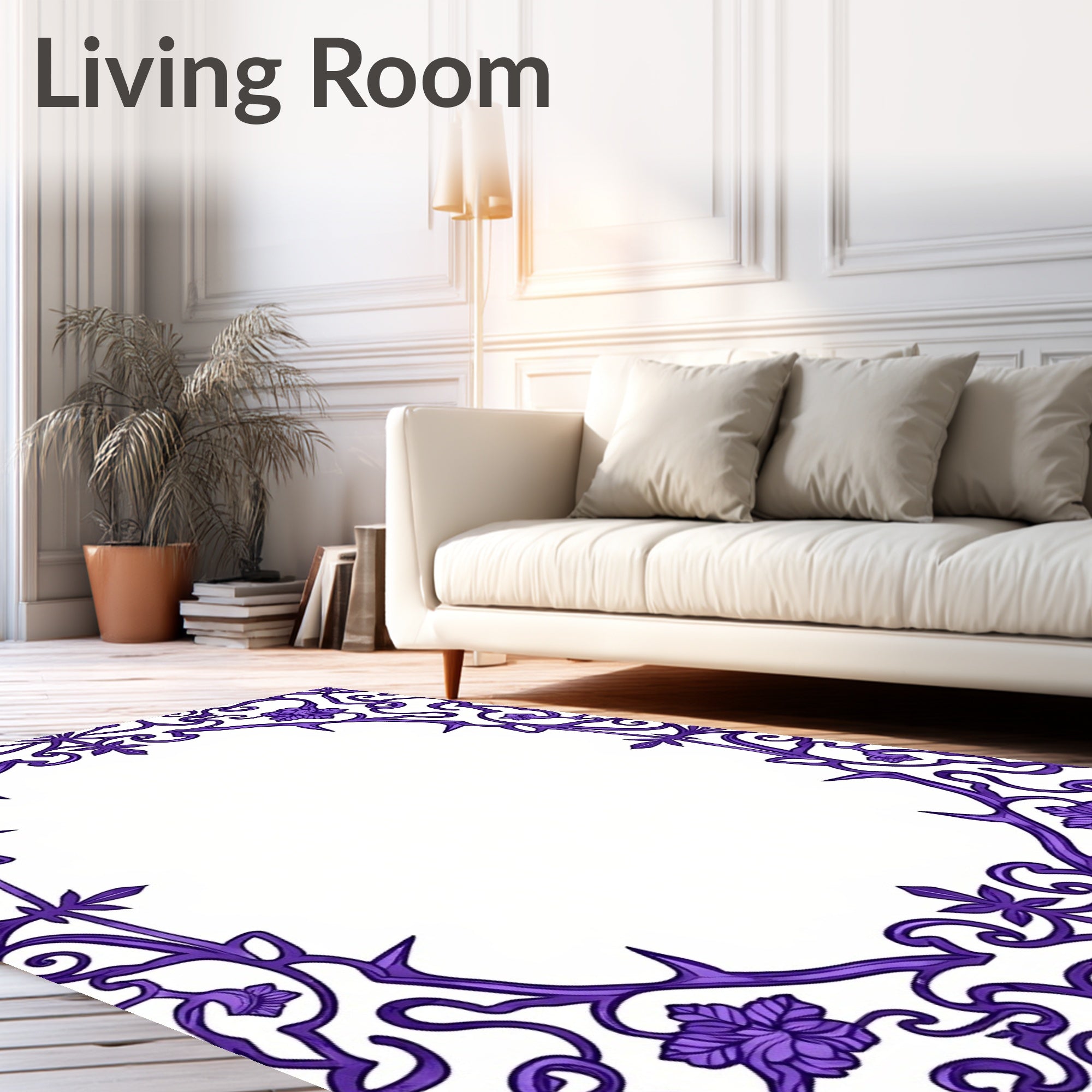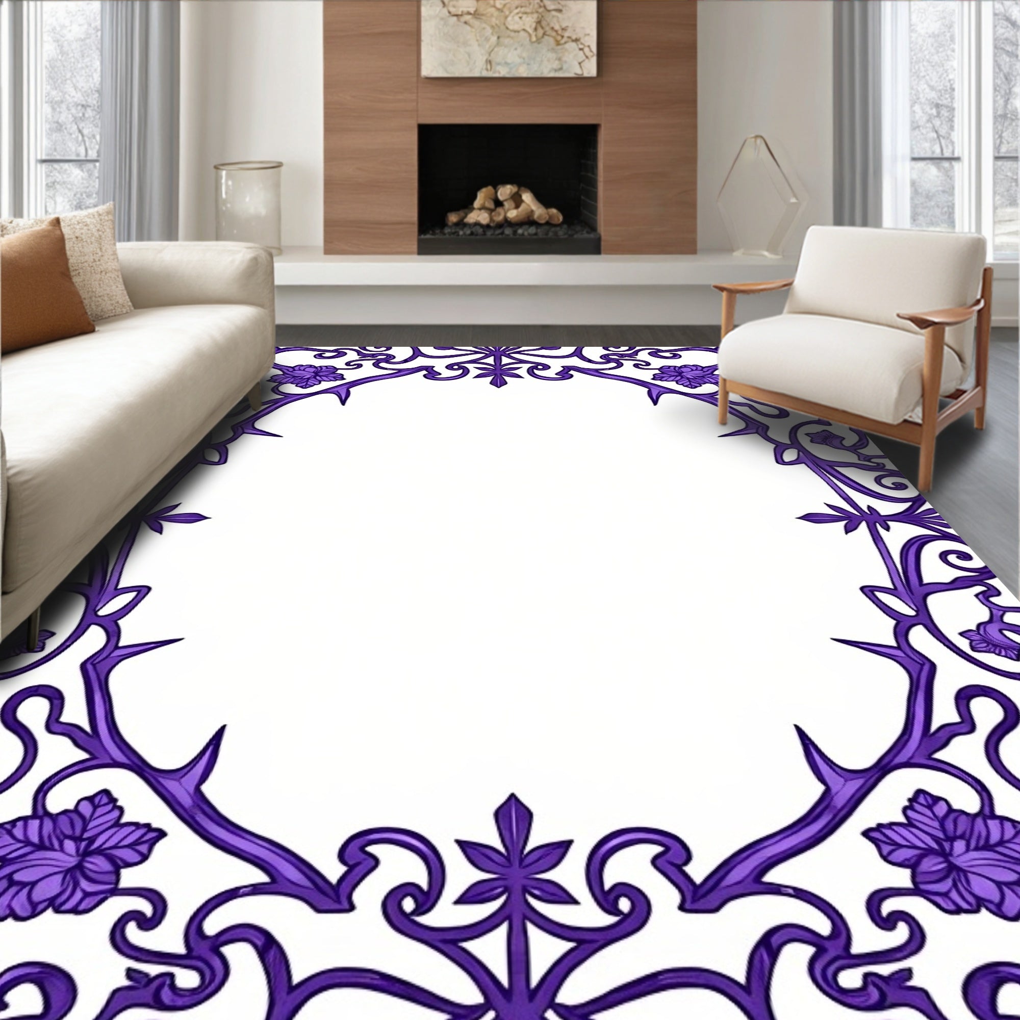 Flatwoven High Traffic Area Rug, Ornamental Scrollwork with Interlaced Floral and Vine, Non Slip, Stain Resistant, Washable Area Rugs for Living Room, Bedroom (Purple) Overview: