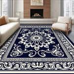 Flatwoven High Traffic Area Rug, Ornate Floral Damask Elegant Sophisticated Timeless Luxe, Non Slip, Stain Resistant, Washable Area Rugs for Living Room, Bedroom (Blue) Overview: