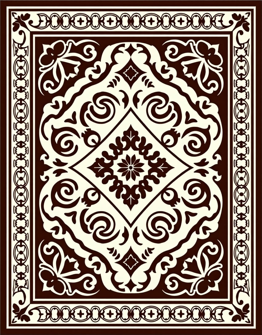 Ornate Scrollwork Floral Embellished Mosaic Grandeur (Brown)