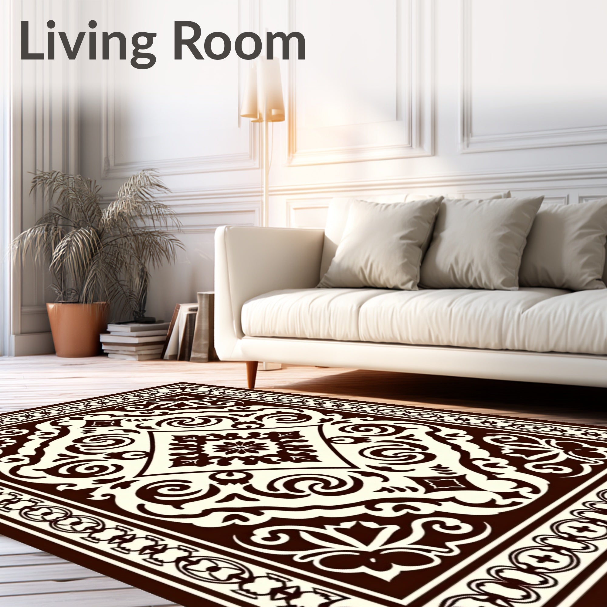 Flatwoven High Traffic Area Rug, Ornate Scrollwork Floral Embellished Mosaic Grandeur, Non Slip, Stain Resistant, Washable Area Rugs for Living Room, Bedroom (Brown) Overview: