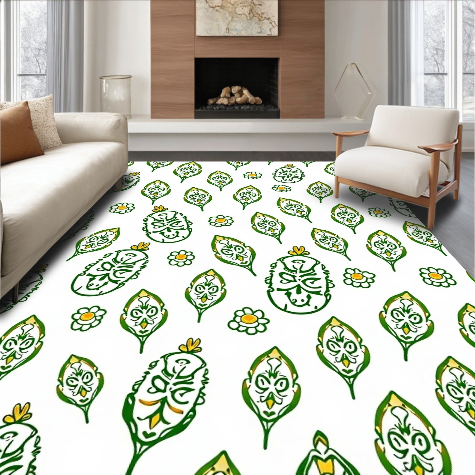 Flatwoven High Traffic Area Rug, Paisley Cascade with Traditional Teardrop Motif Arrangement, Non Slip, Stain Resistant, Washable Area Rugs for Living Room, Bedroom (Green) Overview: