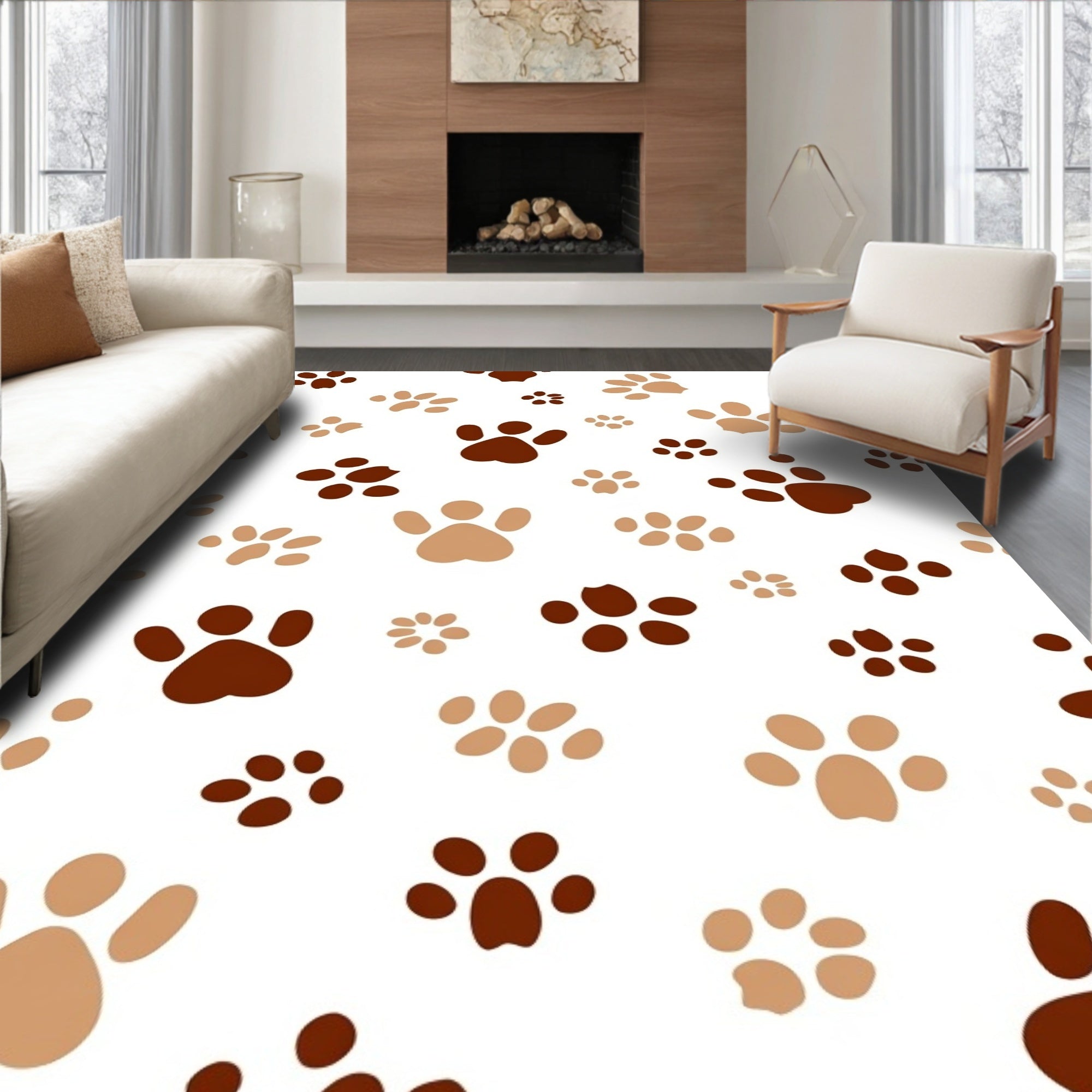 Flatwoven High Traffic Area Rug, Paw Print Trail Design Entry with Absorption Technology, Non Slip, Stain Resistant, Washable Area Rugs for Living Room, Bedroom (Brown) Overview: