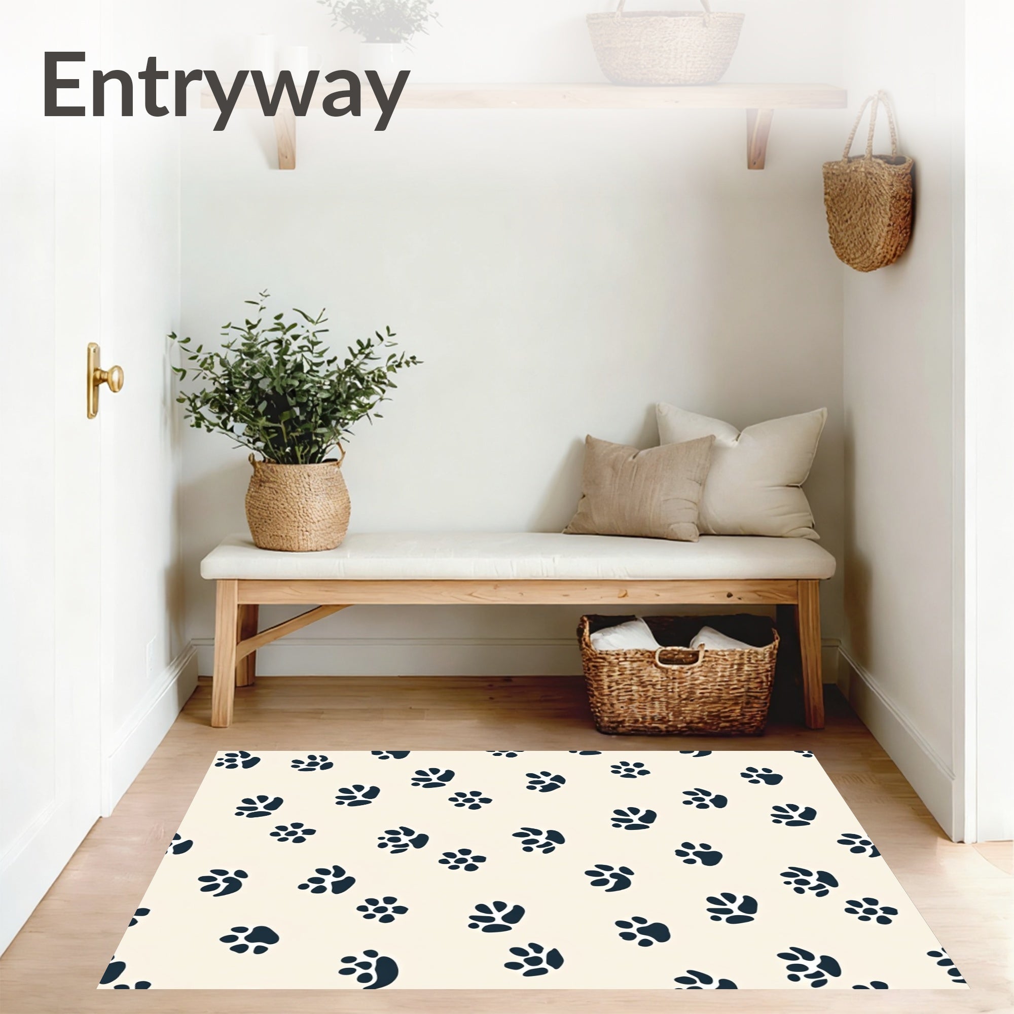 Flatwoven High Traffic Area Rug, Paw Print Trail Entry with Moisture Wicking Technology, Non Slip, Stain Resistant, Washable Area Rugs for Living Room, Bedroom (Beige) Overview: