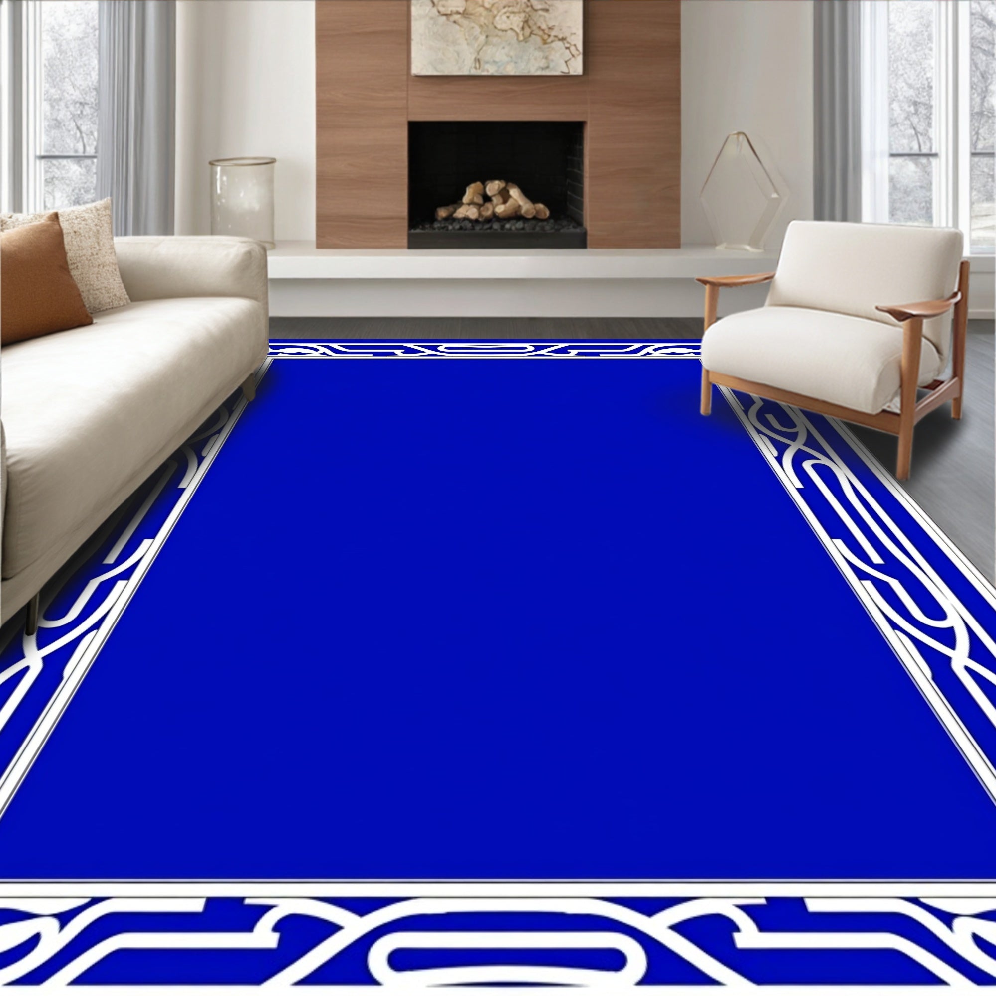 Flatwoven High Traffic Area Rug, Pile Entrance Featuring Curved Border Detailing, Non Slip, Stain Resistant, Washable Area Rugs for Living Room, Bedroom (Blue) Overview: