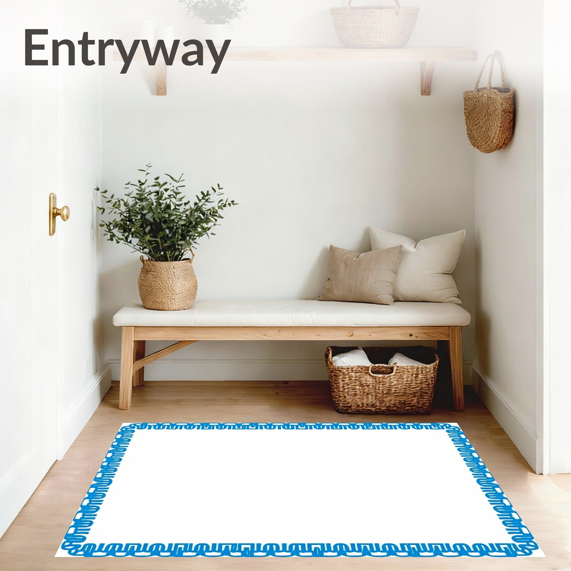 Flatwoven High Traffic Area Rug, Pile with Subtle Nautical Stripes and Elegant Borders, Non Slip, Stain Resistant, Washable Area Rugs for Living Room, Bedroom (Blue) Overview:
