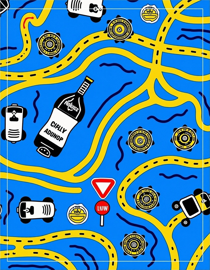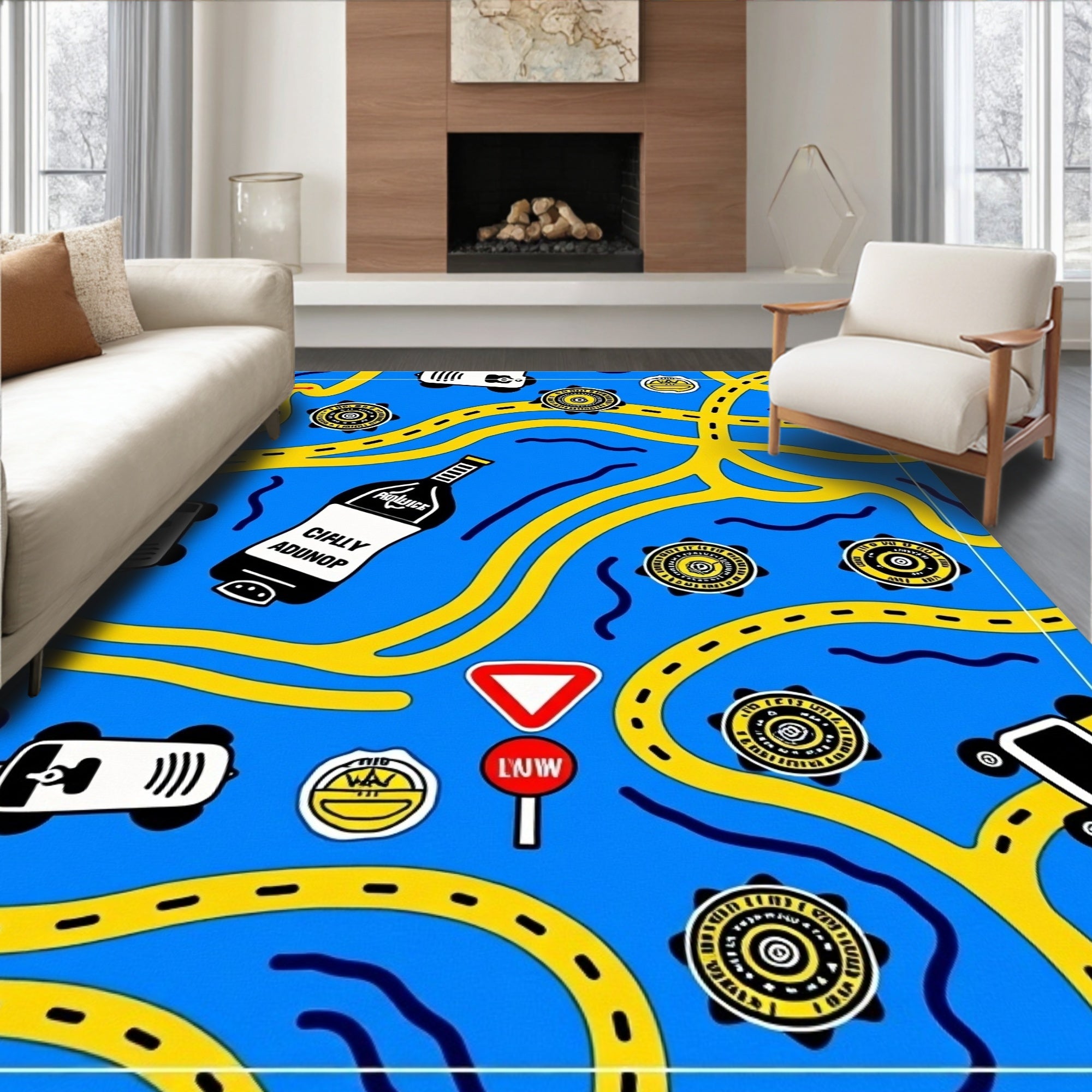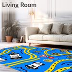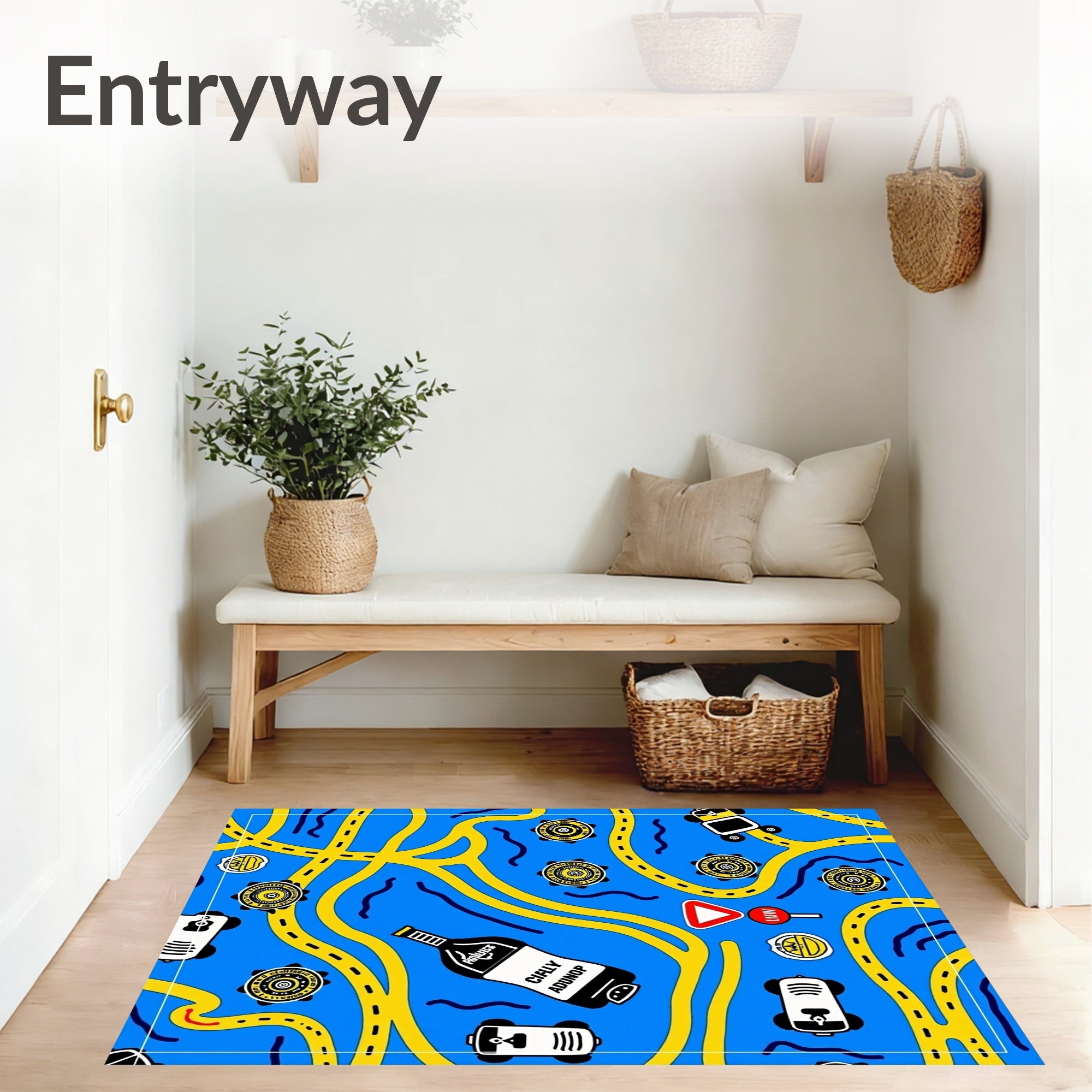 Flatwoven High Traffic Area Rug, Police Badge Adventure Patrol Highway Map Design Indoor, Non Slip, Stain Resistant, Washable Area Rugs for Living Room, Bedroom (Blue) Overview: