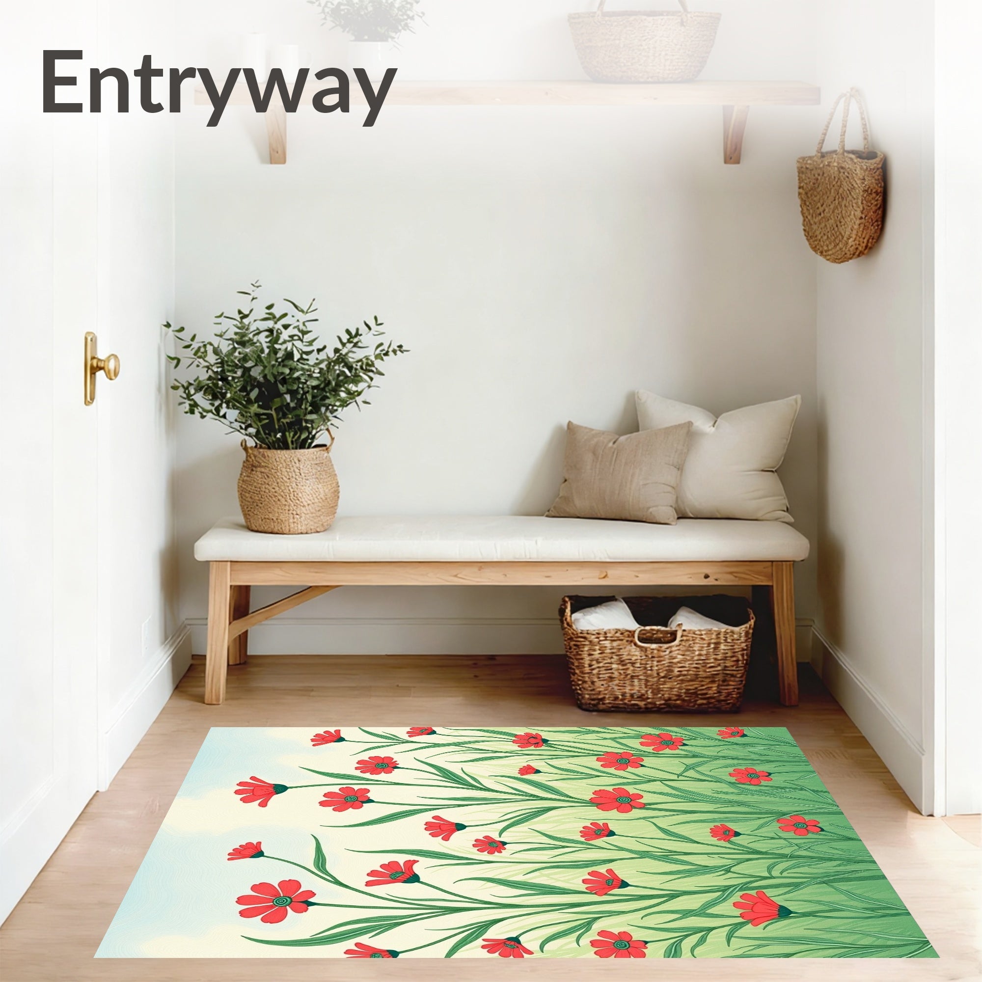 Flatwoven High Traffic Area Rug, Prairie Wildflower Symphony with Dancing Stems, Non Slip, Stain Resistant, Washable Area Rugs for Living Room, Bedroom (Red) Overview: