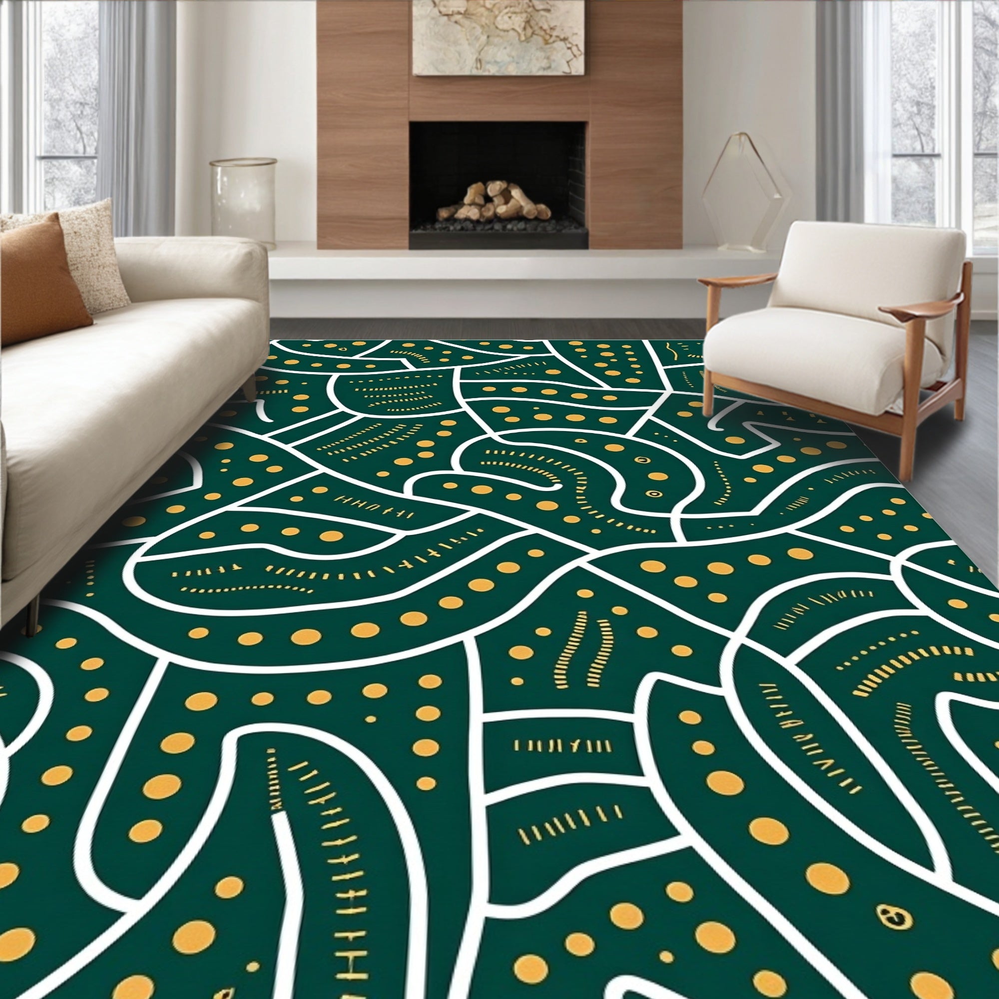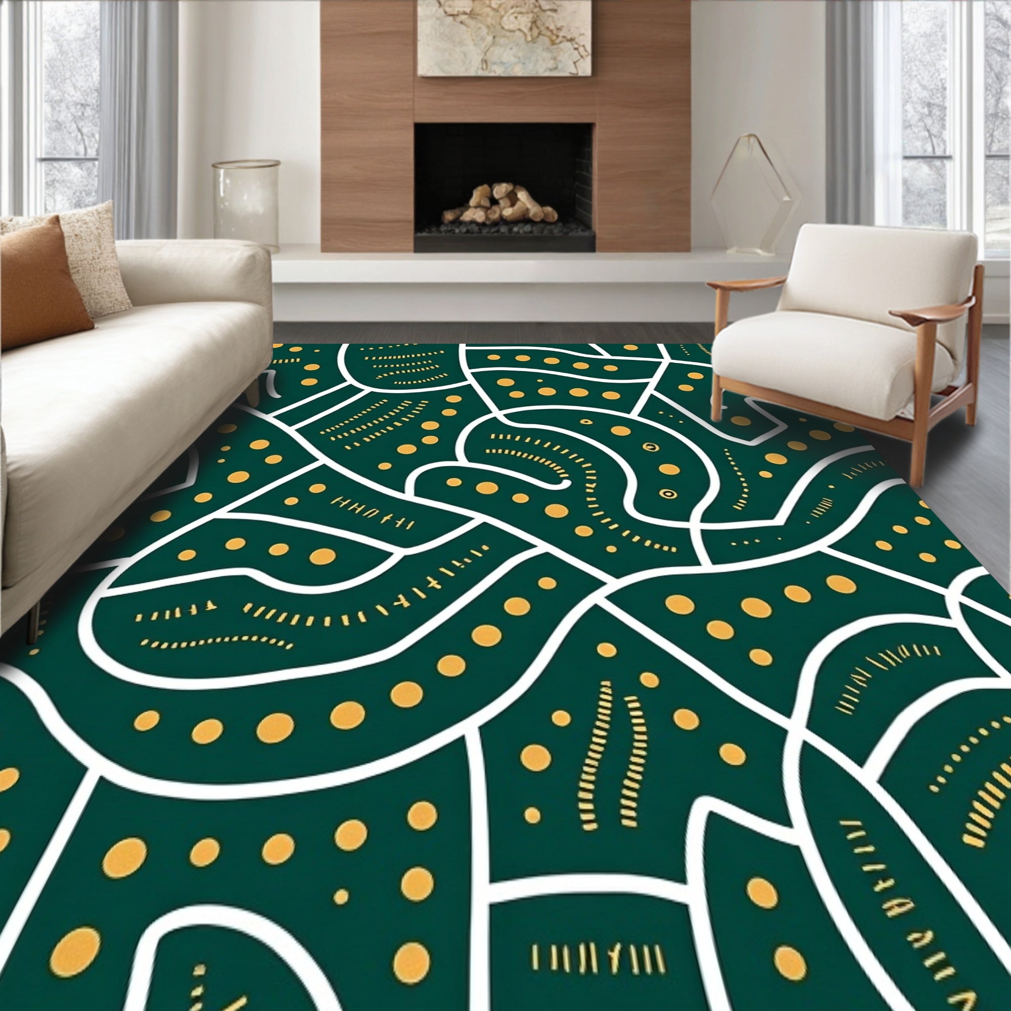 Flatwoven High Traffic Area Rug, Retro Abstract Lines and Dots Design, Non Slip, Stain Resistant, Washable Area Rugs for Living Room, Bedroom (Green) Overview:
