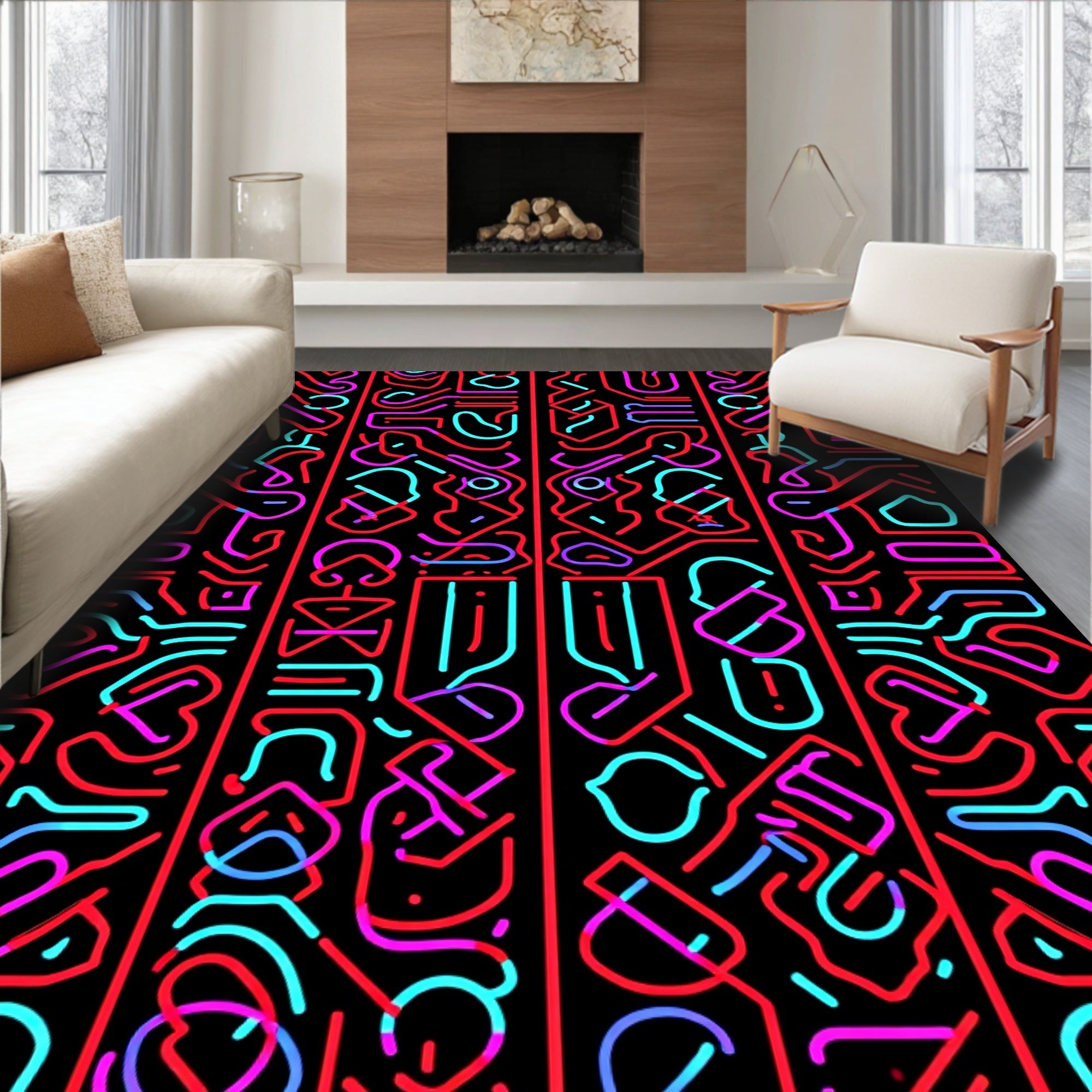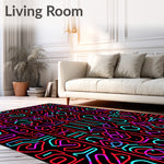Flatwoven High Traffic Area Rug, Retro Arcade Button Array and Chromatic Laser Wave, Non Slip, Stain Resistant, Washable Area Rugs for Living Room, Bedroom (Black) Overview: