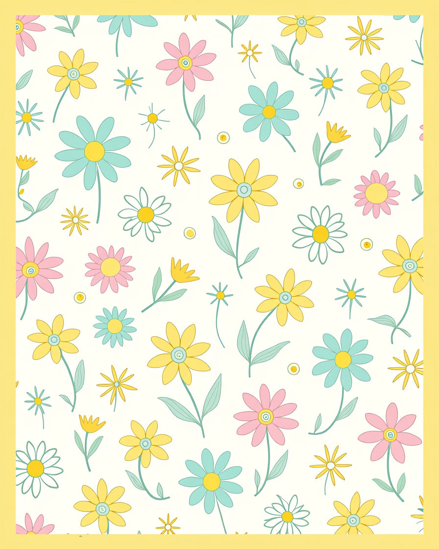 Retro Daisy with Playful Scattered Bud Design (Yellow)