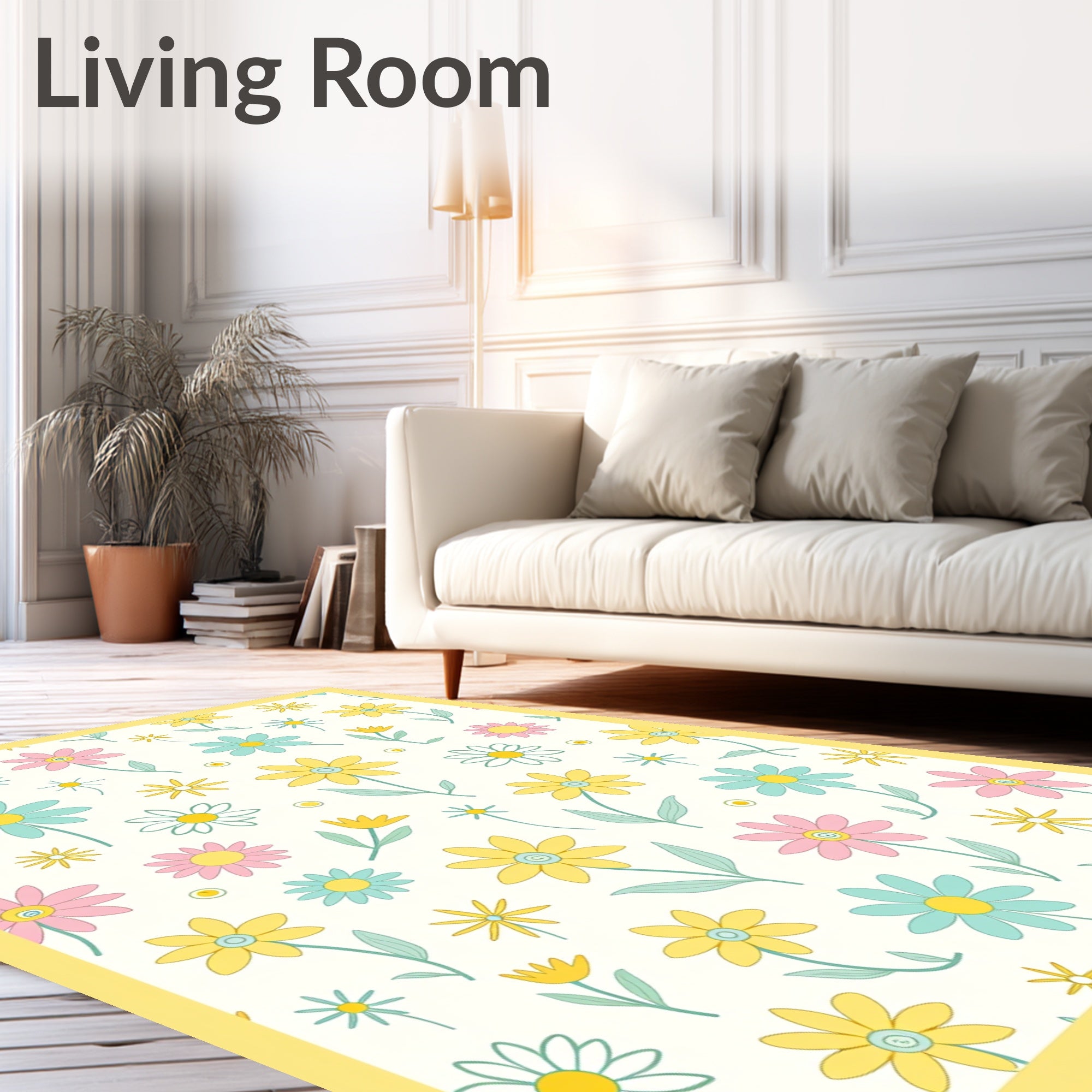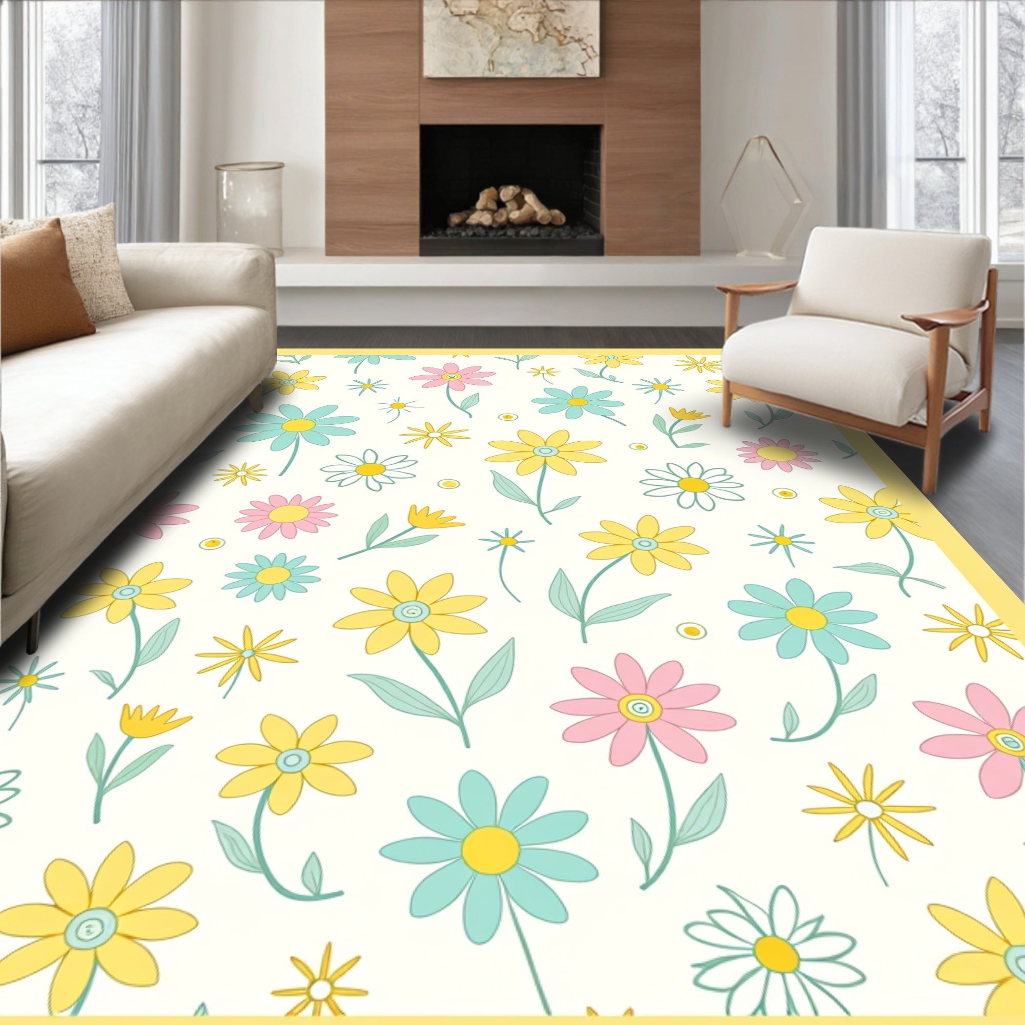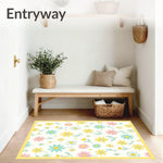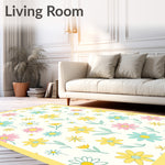 Flatwoven High Traffic Area Rug, Retro Daisy with Playful Scattered Bud Design, Non Slip, Stain Resistant, Washable Area Rugs for Living Room, Bedroom (Yellow) Overview:
