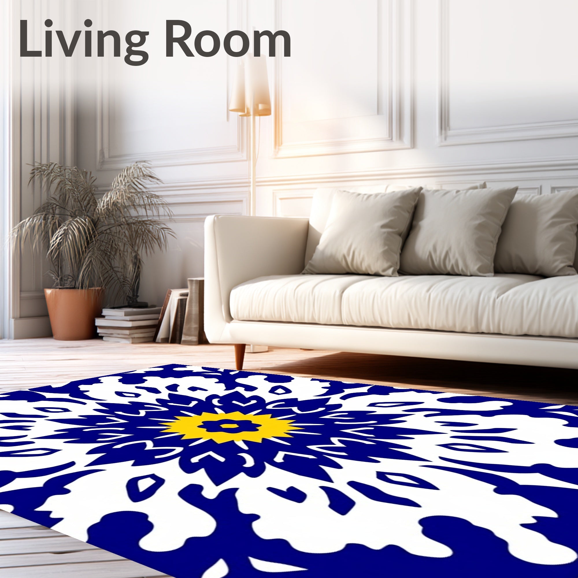 Flatwoven High Traffic Area Rug, Retro Medallion Flora Array with Interlocking Petals and Modern Twist, Non Slip, Stain Resistant, Washable Area Rugs for Living Room, Bedroom (Blue) Overview: