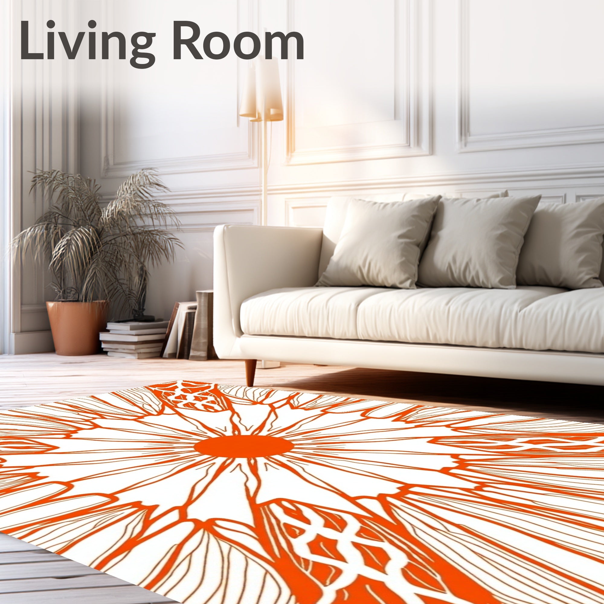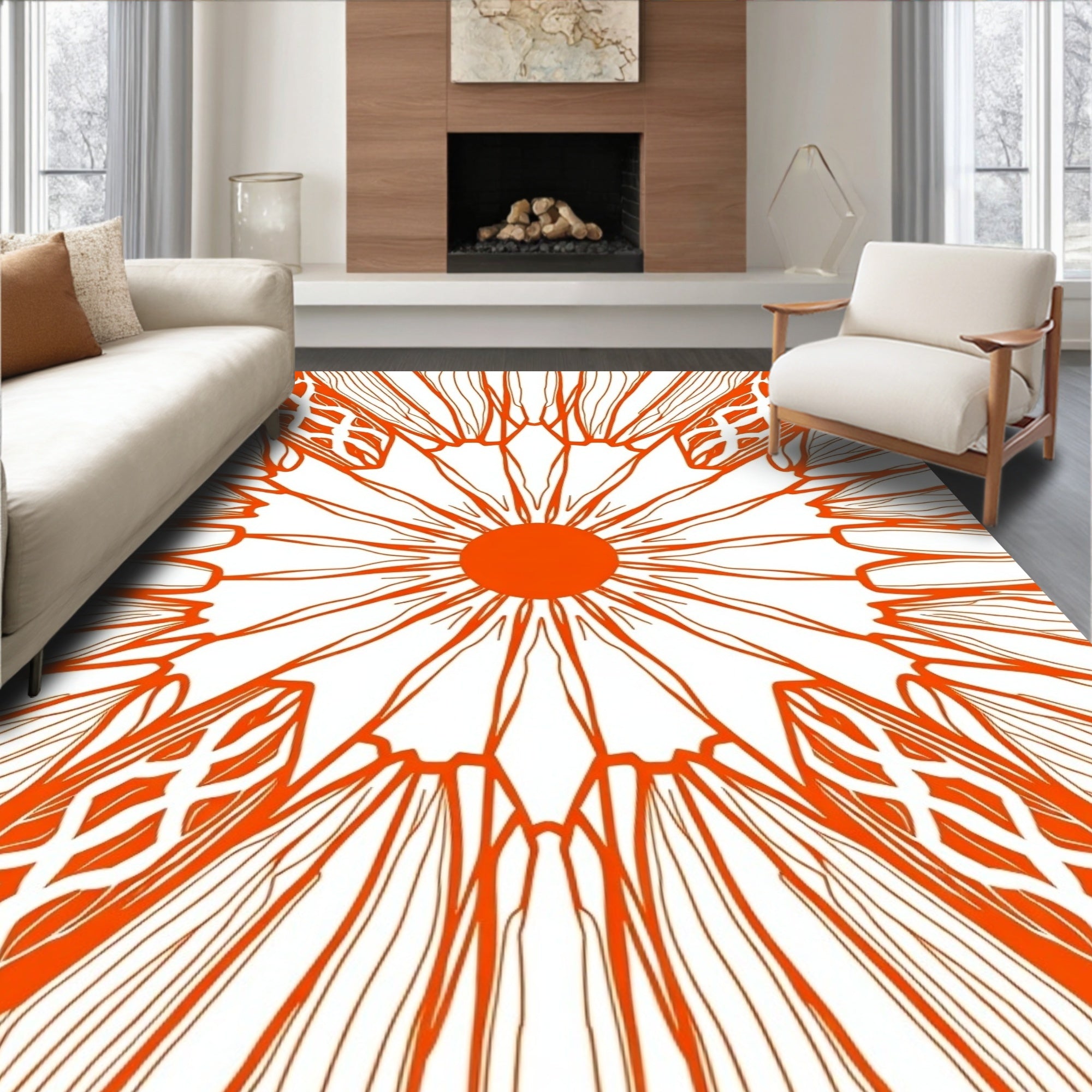 Flatwoven High Traffic Area Rug, Retro Mod Interlocking Lattice with Radiant Burst, Non Slip, Stain Resistant, Washable Area Rugs for Living Room, Bedroom (Orange) Overview: