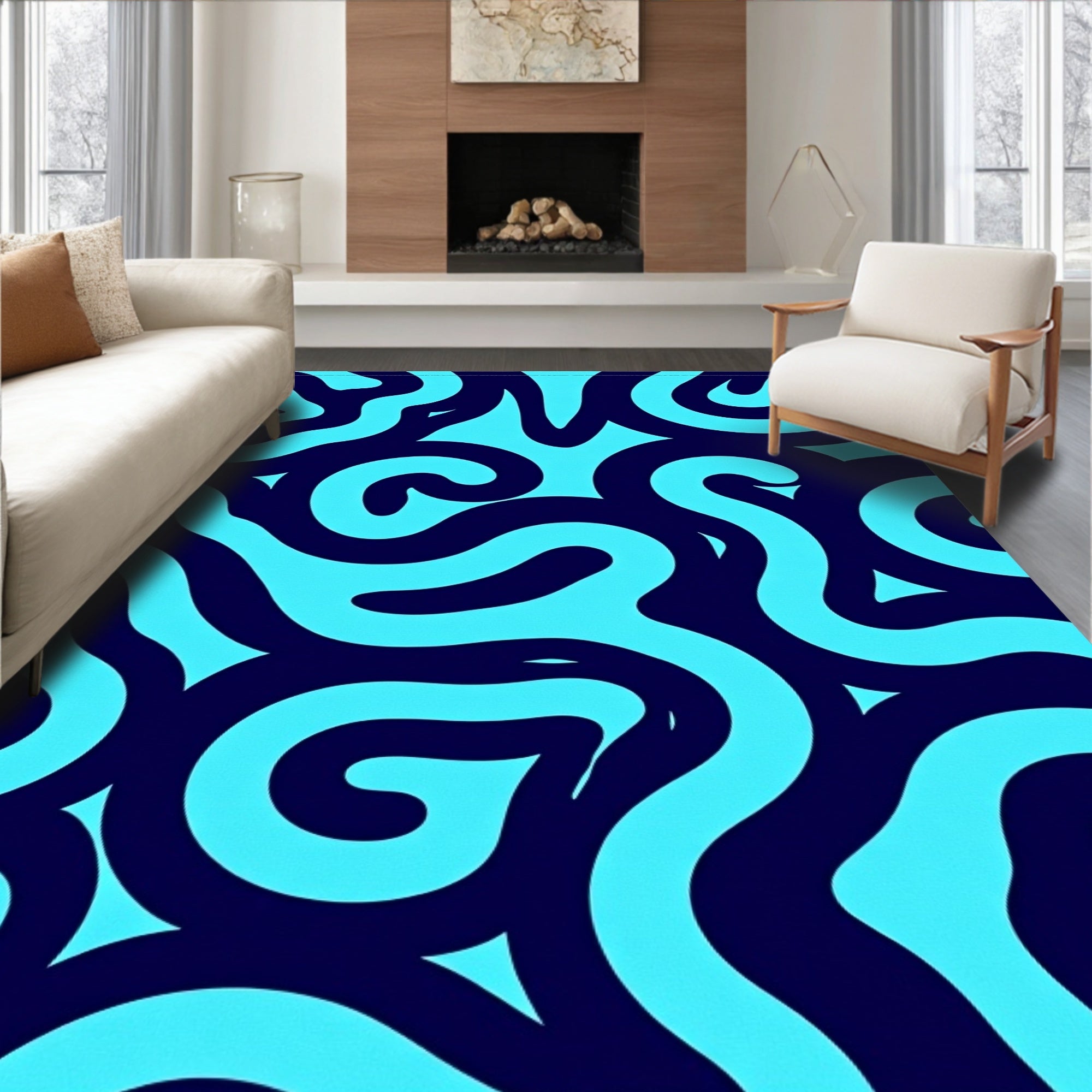 Flatwoven High Traffic Area Rug, Retro Swirl Maze with Modern Abstract Touches, Non Slip, Stain Resistant, Washable Area Rugs for Living Room, Bedroom (Blue) Overview: