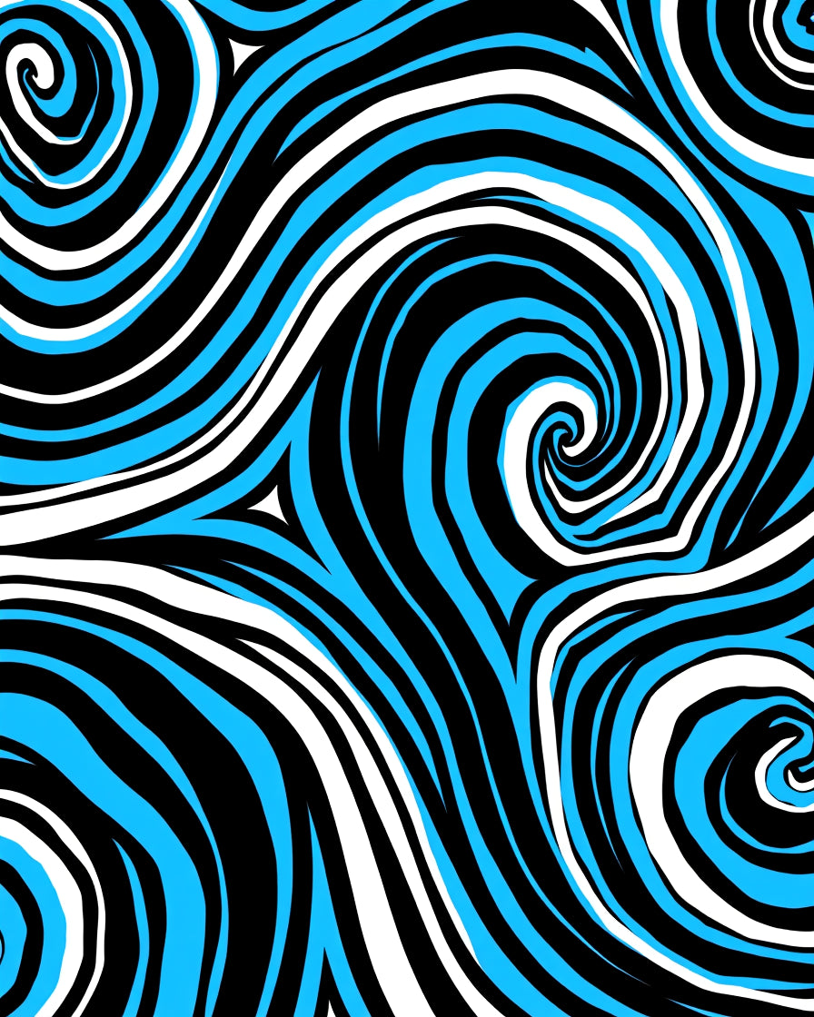 Retro Swirl Motif with Abstract Fluid Waves and Vintage (Blue)