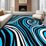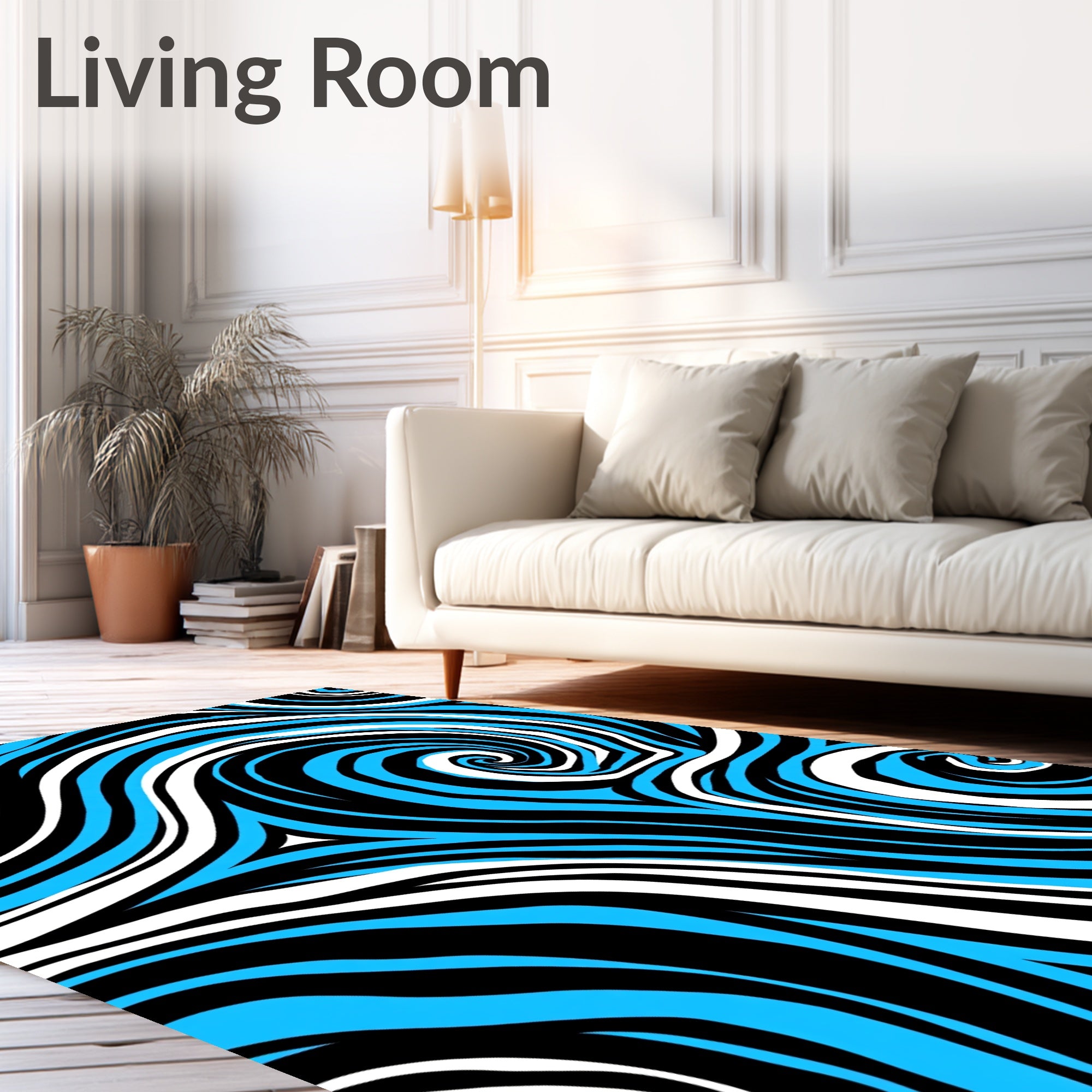 Flatwoven High Traffic Area Rug, Retro Swirl Motif with Abstract Fluid Waves and Vintage, Non Slip, Stain Resistant, Washable Area Rugs for Living Room, Bedroom (Blue) Overview: