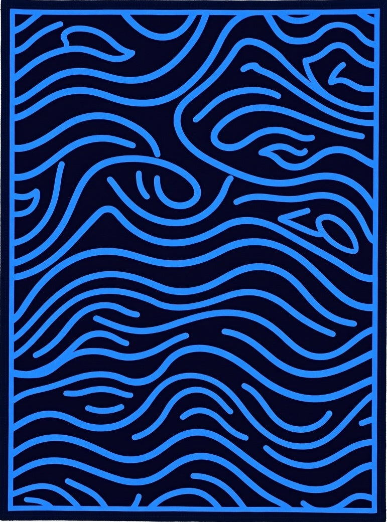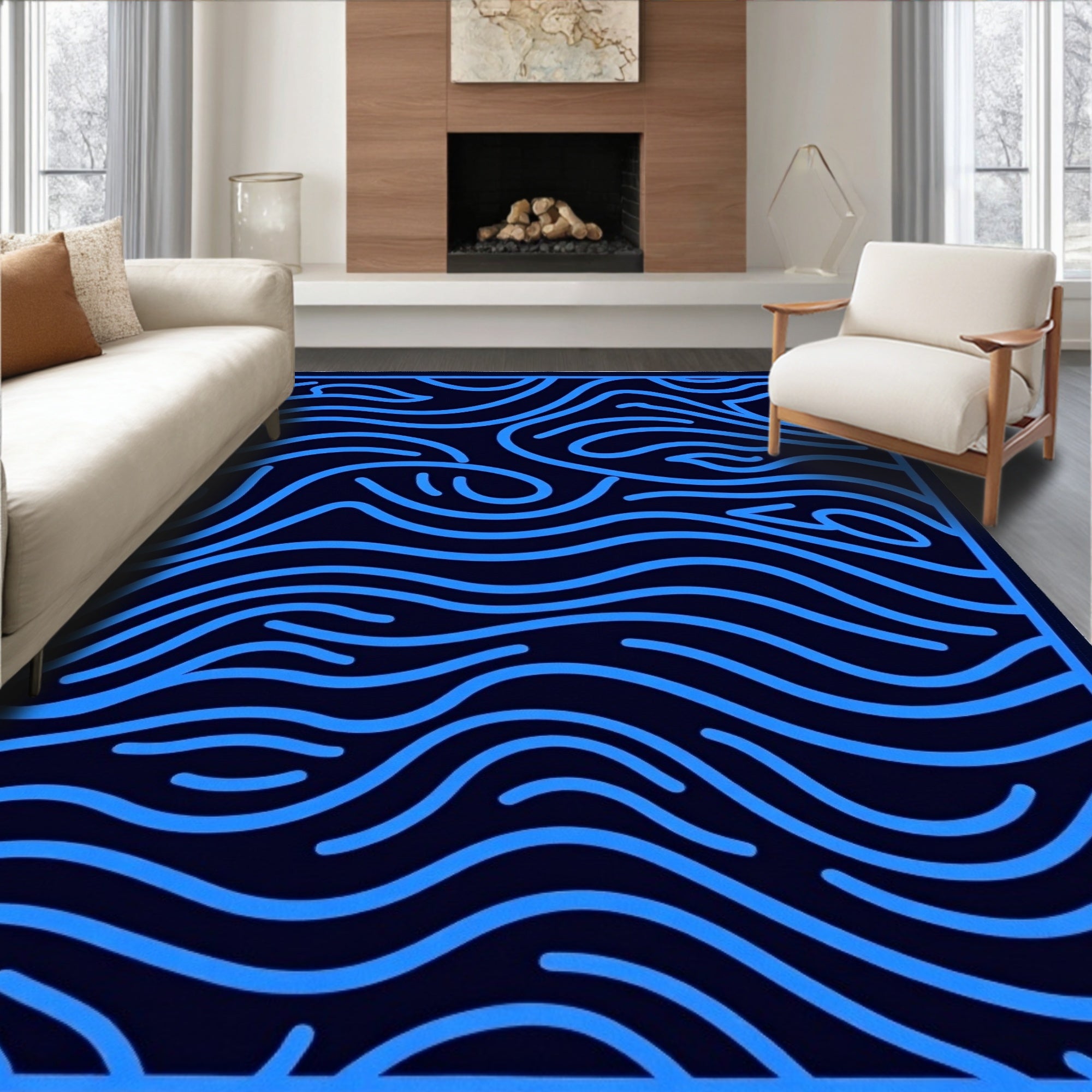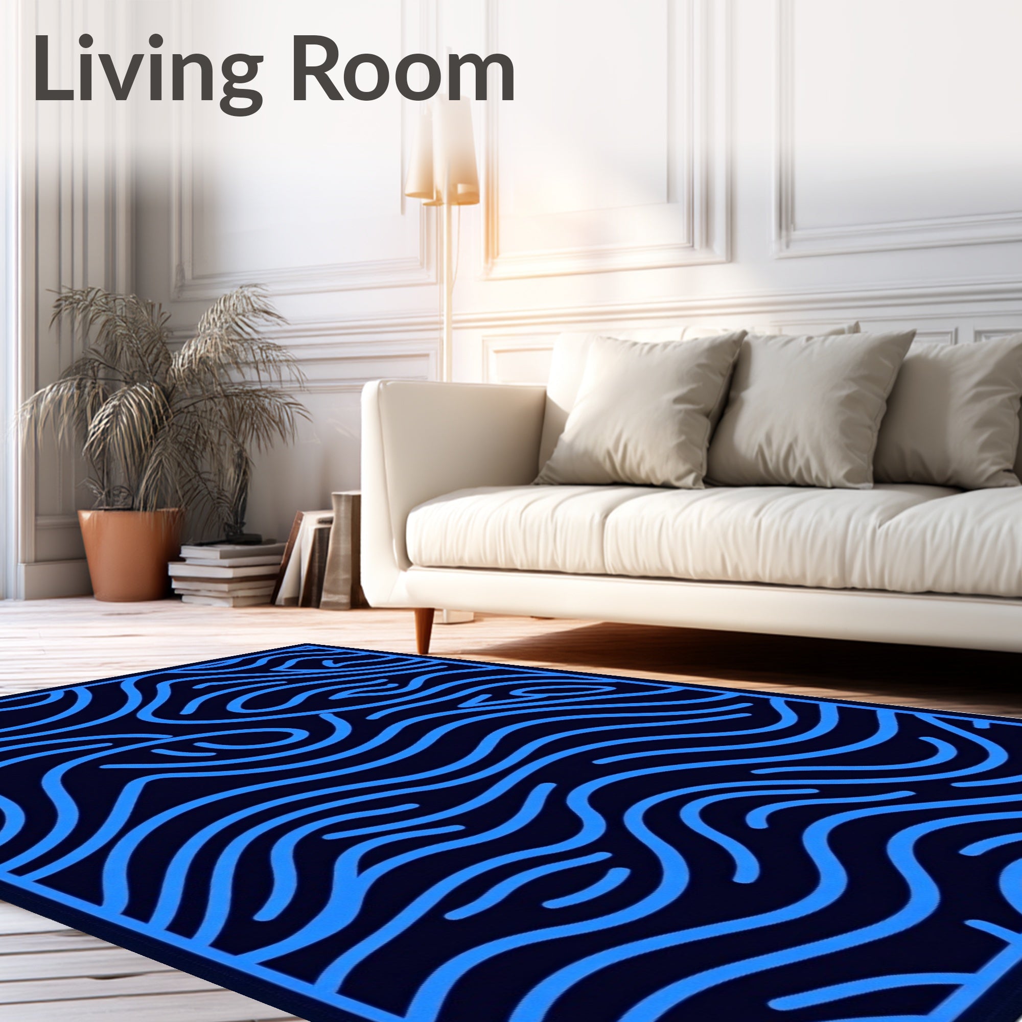Flatwoven High Traffic Area Rug, Ripple Effect Wavy Bordered Accessory Featuring Secure Foundation, Non Slip, Stain Resistant, Washable Area Rugs for Living Room, Bedroom (Blue) Overview: