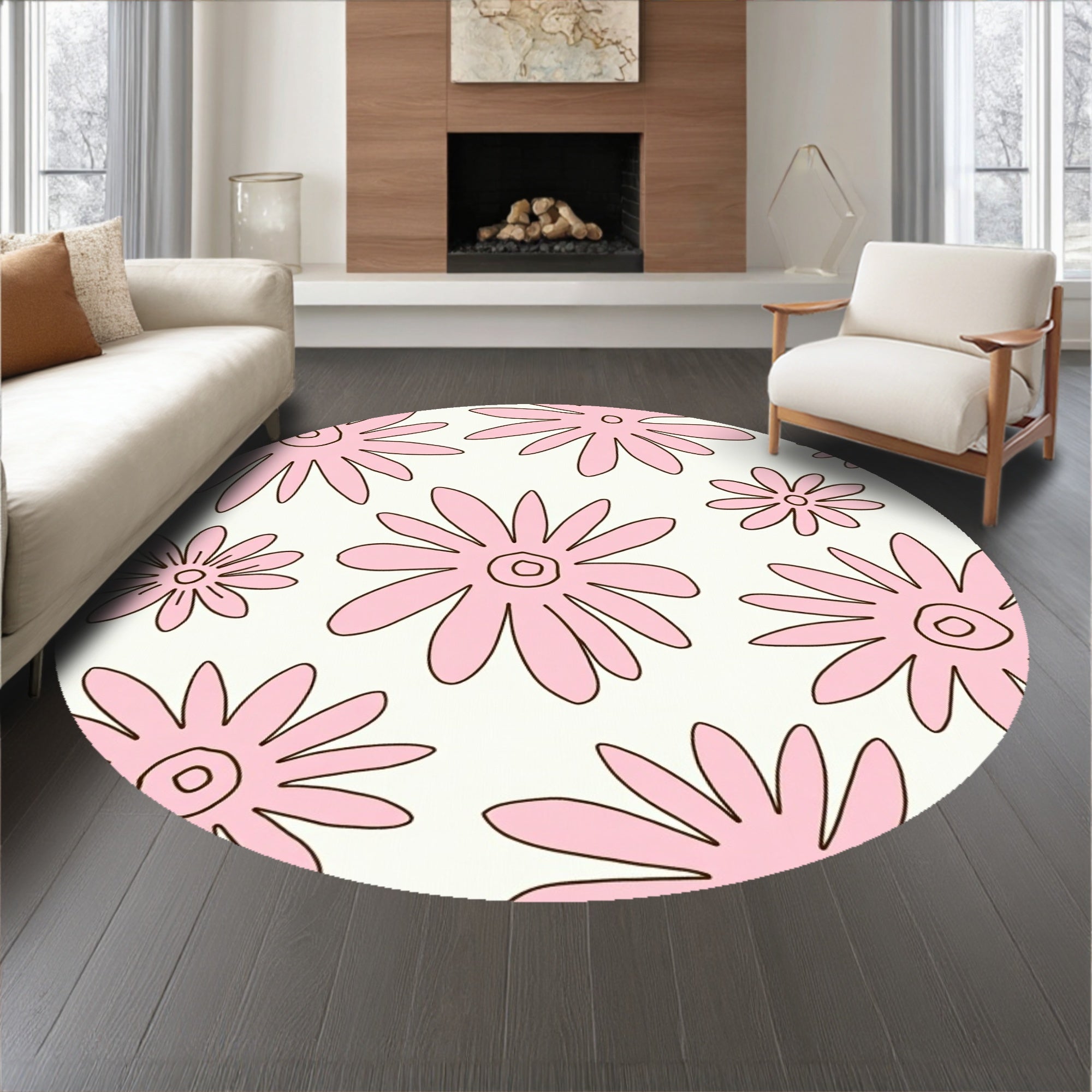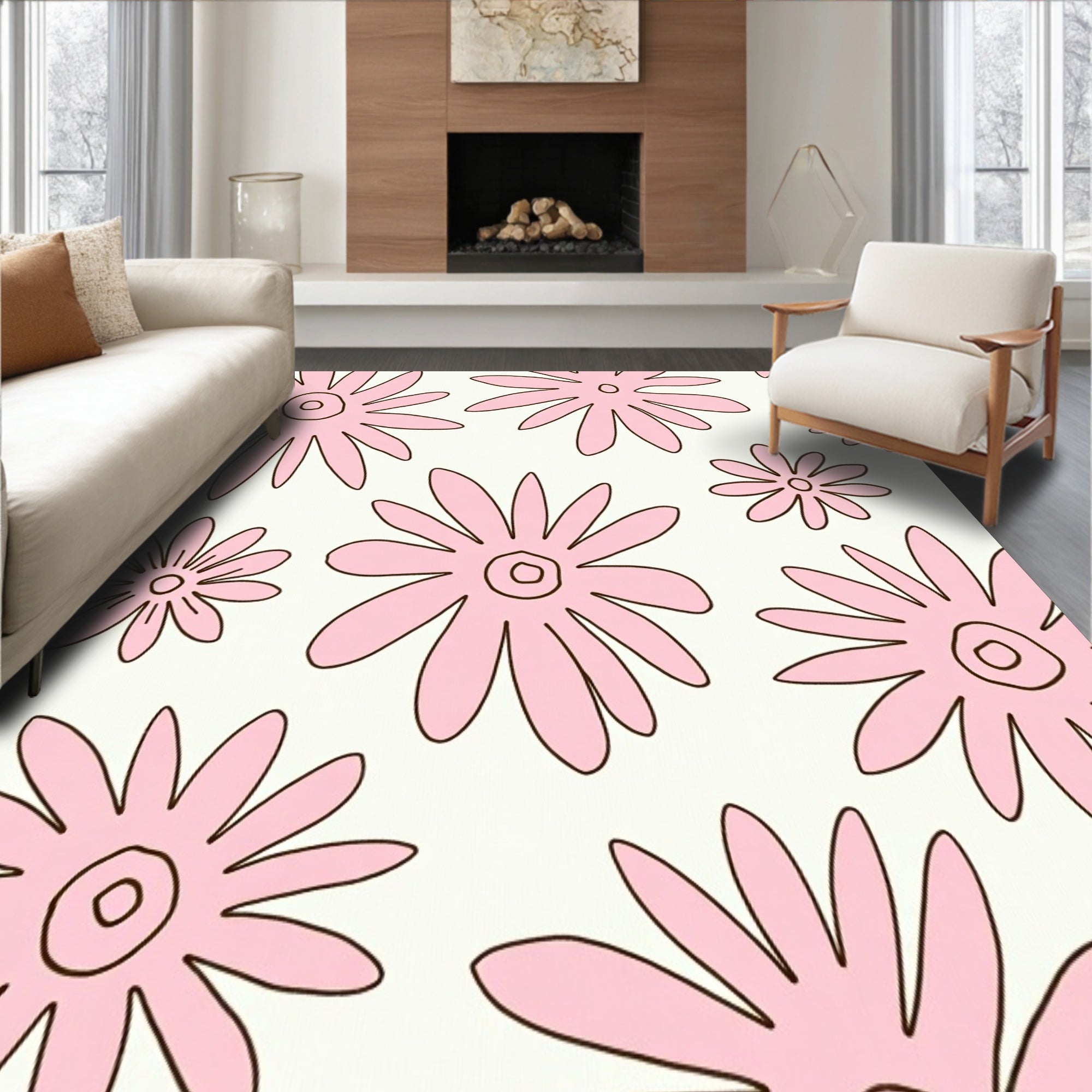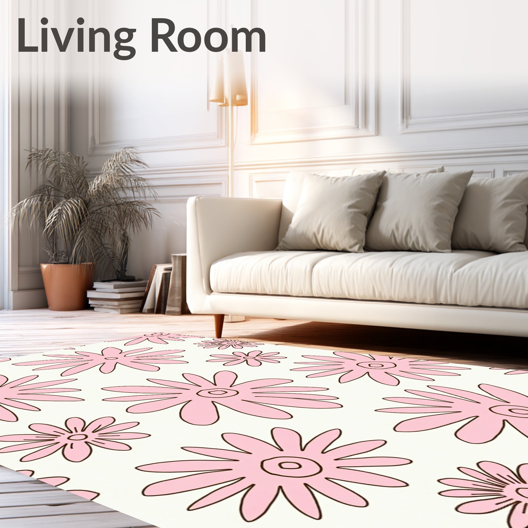 Flatwoven High Traffic Area Rug, Sophisticated Abstract Floral Motifs on Neutral Background, Non Slip, Stain Resistant, Washable Area Rugs for Living Room, Bedroom (Pink) Overview: