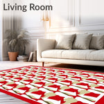 Flatwoven High Traffic Area Rug, Sophisticated Bordered Honeycomb Hexagonal Decorative, Non Slip, Stain Resistant, Washable Area Rugs for Living Room, Bedroom (Red) Overview: