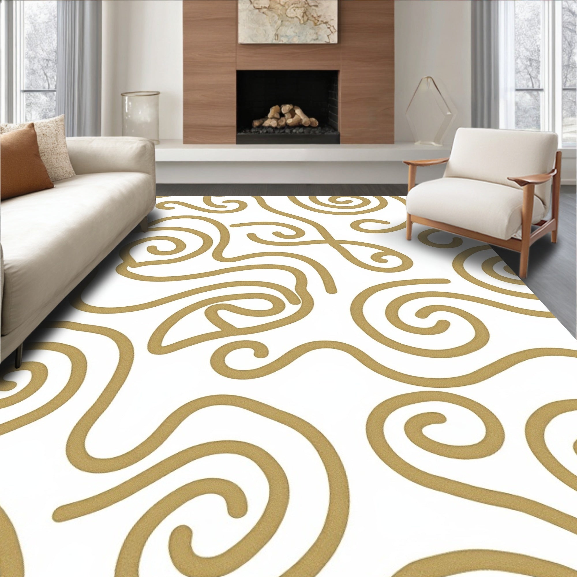 Flatwoven High Traffic Area Rug, Spiral Wave Flow High Performance Entrance, Non Slip, Stain Resistant, Washable Area Rugs for Living Room, Bedroom (Gold) Overview: